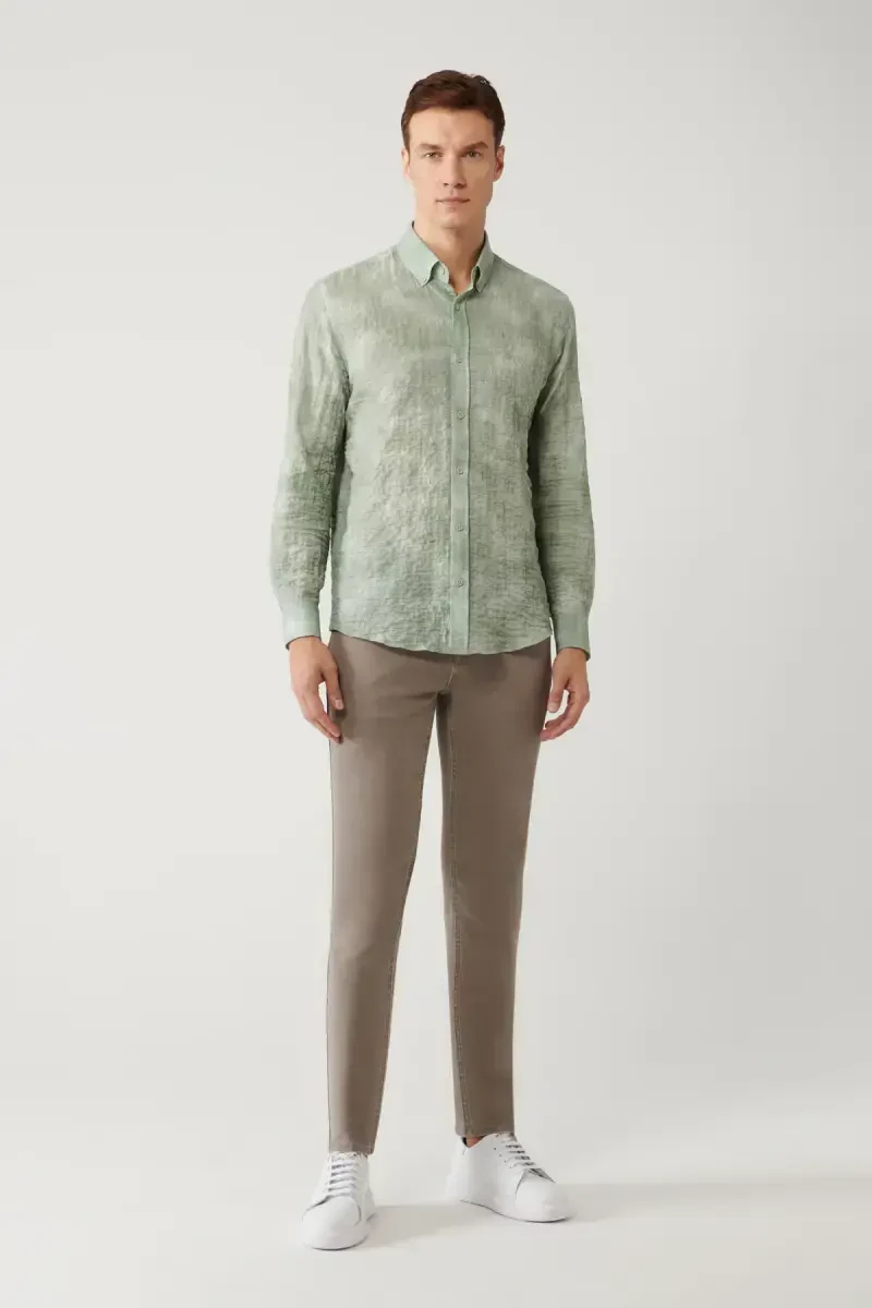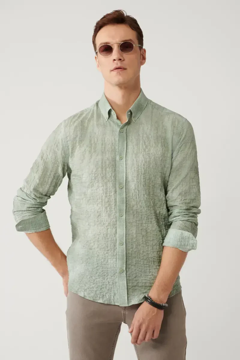 Эта стильная и современная зеленая рубашка с классическим кроем, подходящим для повседневного использования, идеально садится на вашу фигуру. Деталь с отложным воротником в британском стиле добавляет рубашке утонченности, помогая вам выделяться в любой обстановке. Изготовленная из хлопчатобумажного вафельного полотна, рубашка обеспечивает комфорт в течение всего дня благодаря своей воздухопроницаемости и мягкой текстуре.