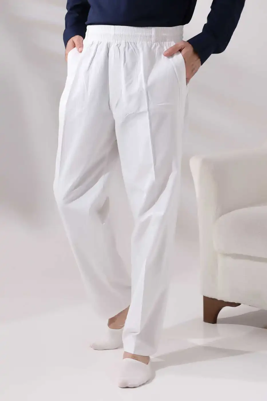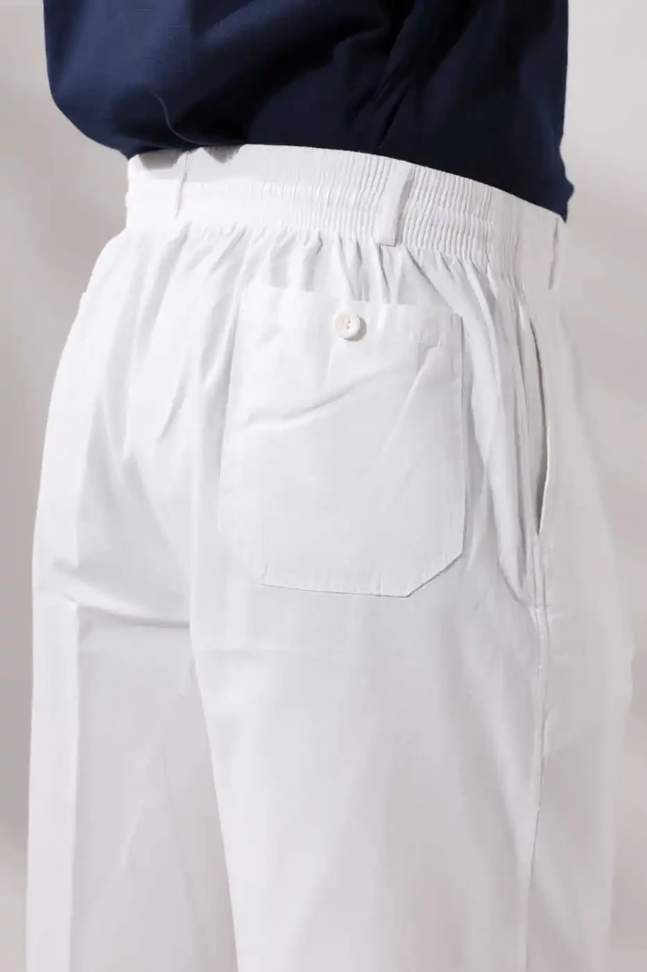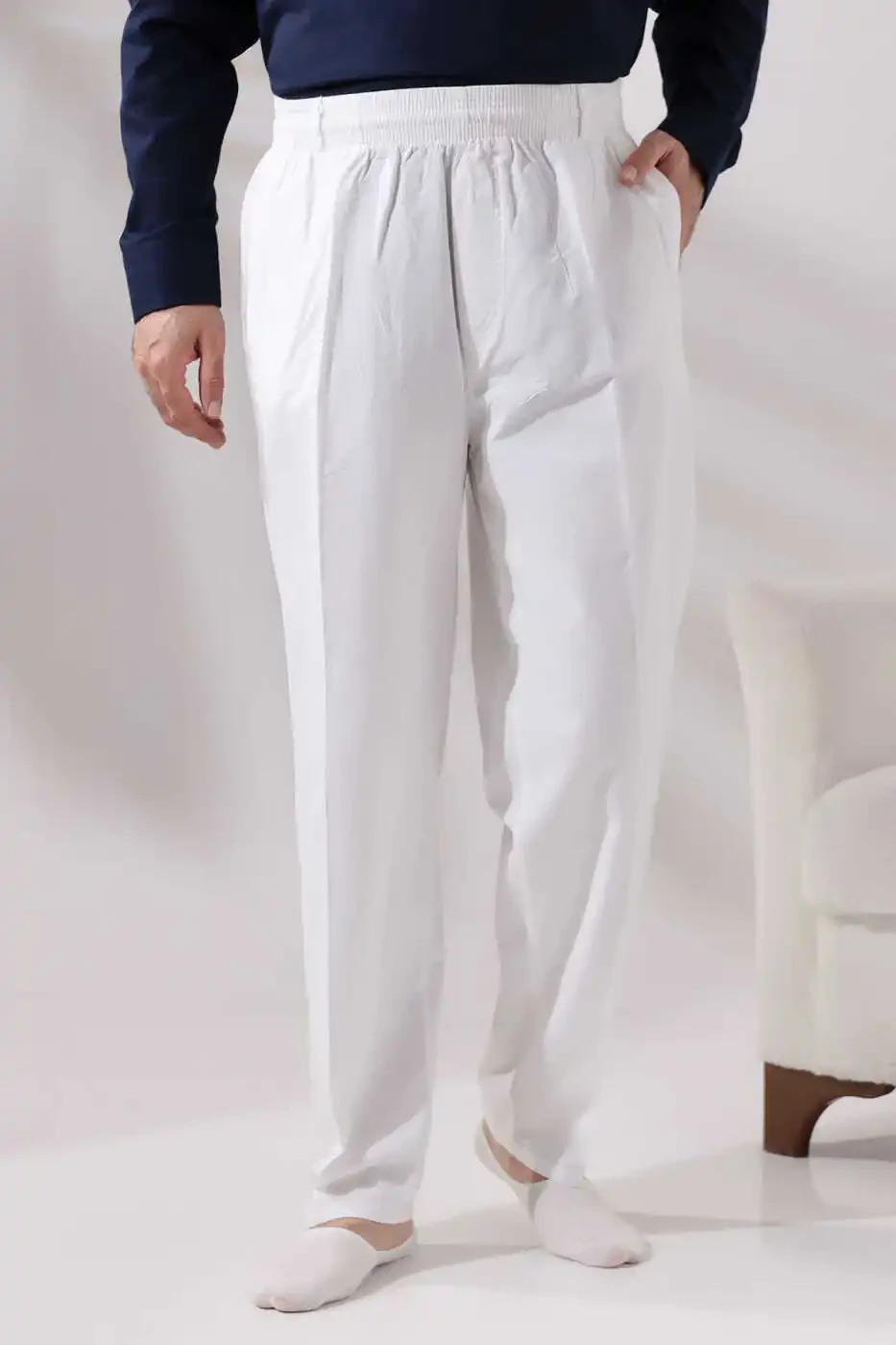 **Мужские белые свободные штаны с эластичным поясом из льна для хаджа и умры**