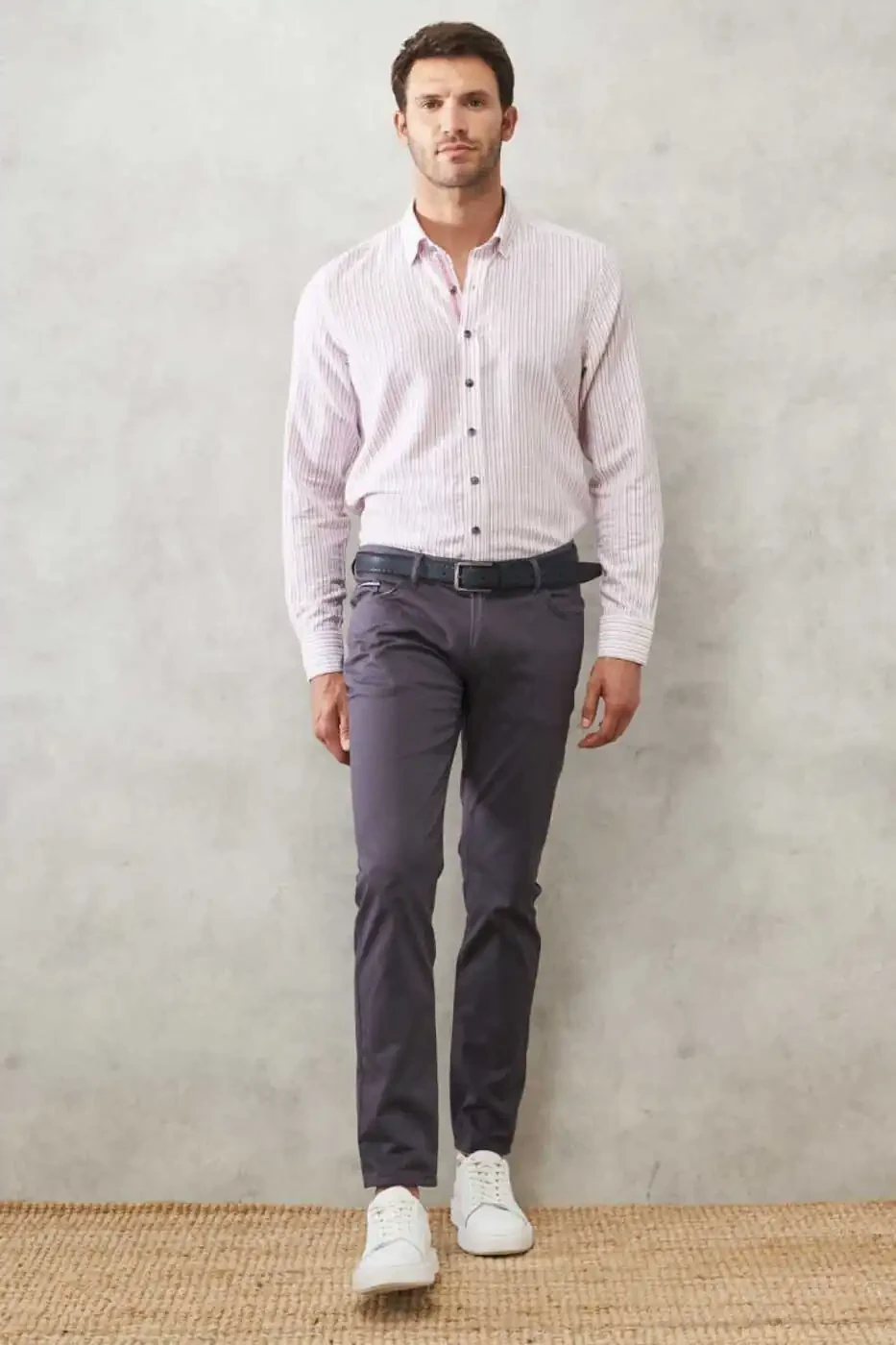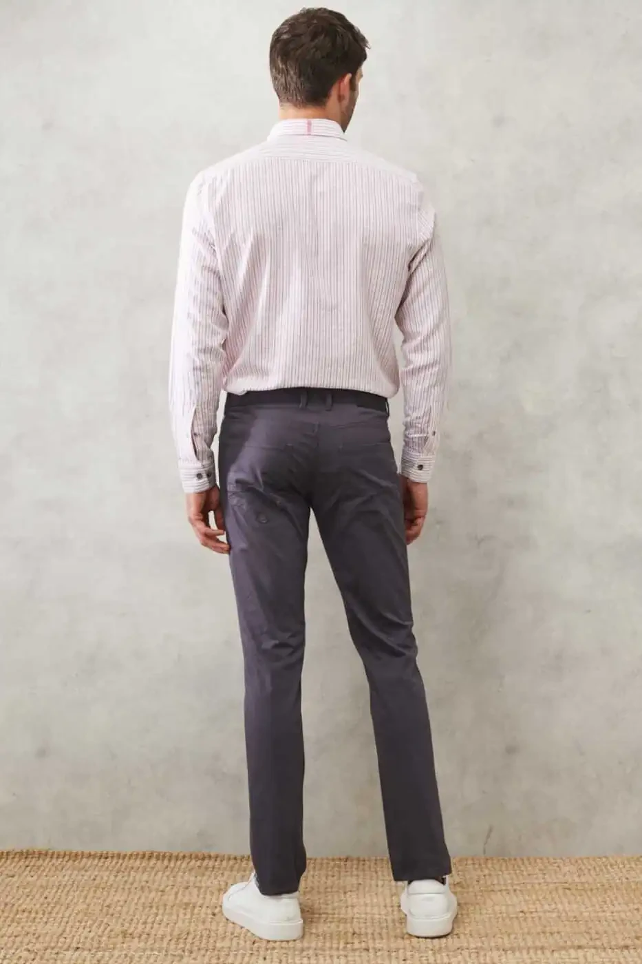 Познакомьтесь с темно-серыми узкими брюками чино с 5 карманами, которые сочетают в себе стиль и комфорт и станут неотъемлемой частью мужского гардероба. Благодаря мягкой текстуре и идеальной посадке эти брюки обеспечат комфорт на весь день, они идеально подойдут для любого стиля.