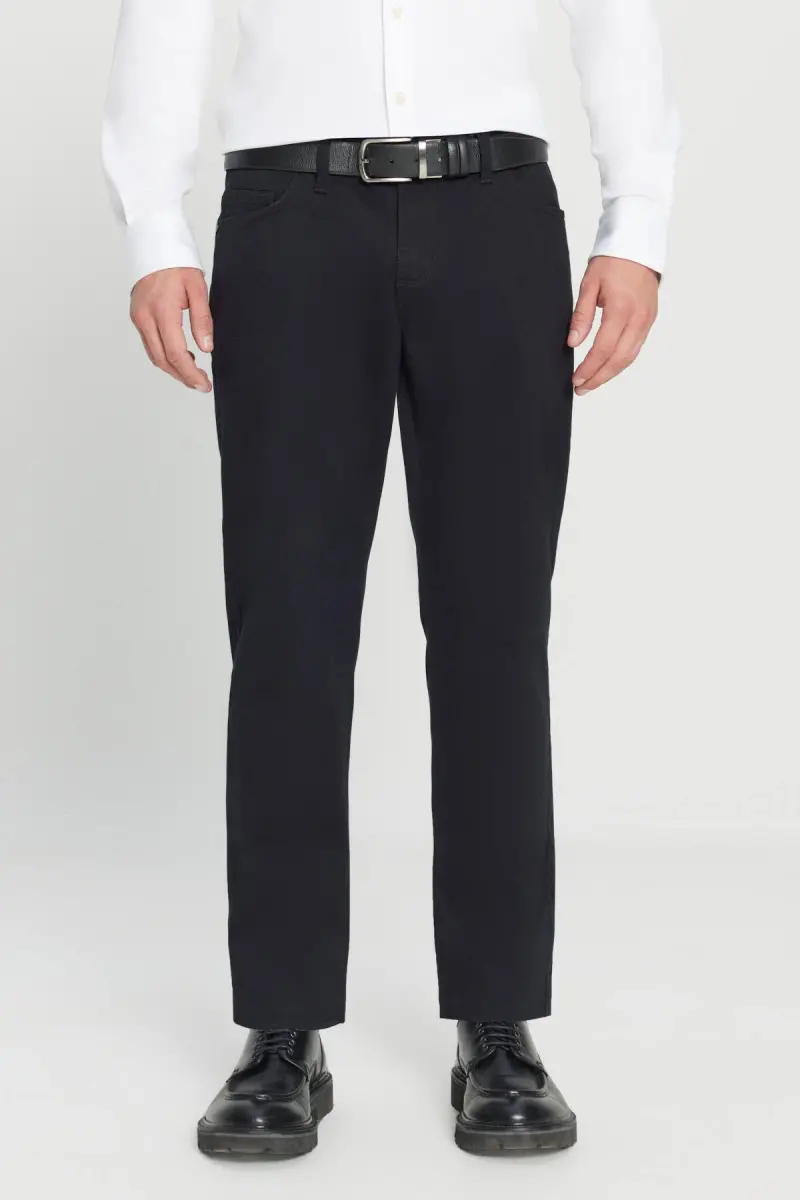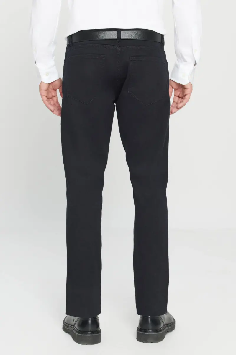 Сочетающие в себе стиль и комфорт, эти мужские черные брюки чино slim fit станут незаменимым элементом вашего гардероба. Изготовленные из высококачественной хлопковой канвасовой ткани, брюки обеспечивают комфорт при носке, а также придают современный и стильный вид. Крой slim fit идеально садится по фигуре, создавая элегантный силуэт. Благодаря 5 карманам, брюки обеспечивают практичность, их можно легко выбирать для повседневной жизни, деловой обстановки и особых случаев.