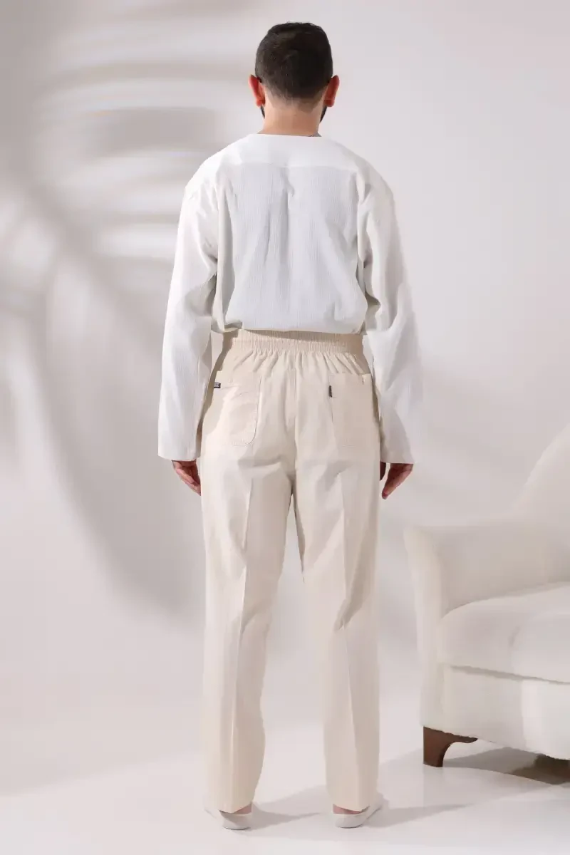 Эти шаровары с двумя задними карманами и двумя боковыми карманами позволяют вам надежно хранить свои вещи. Кремовый цвет обеспечивает простой и стильный внешний вид. Изделие соответствует традиционным требованиям к одежде для религиозных обрядов, таких как хадж и умра, а также отличается удобным и практичным дизайном.
