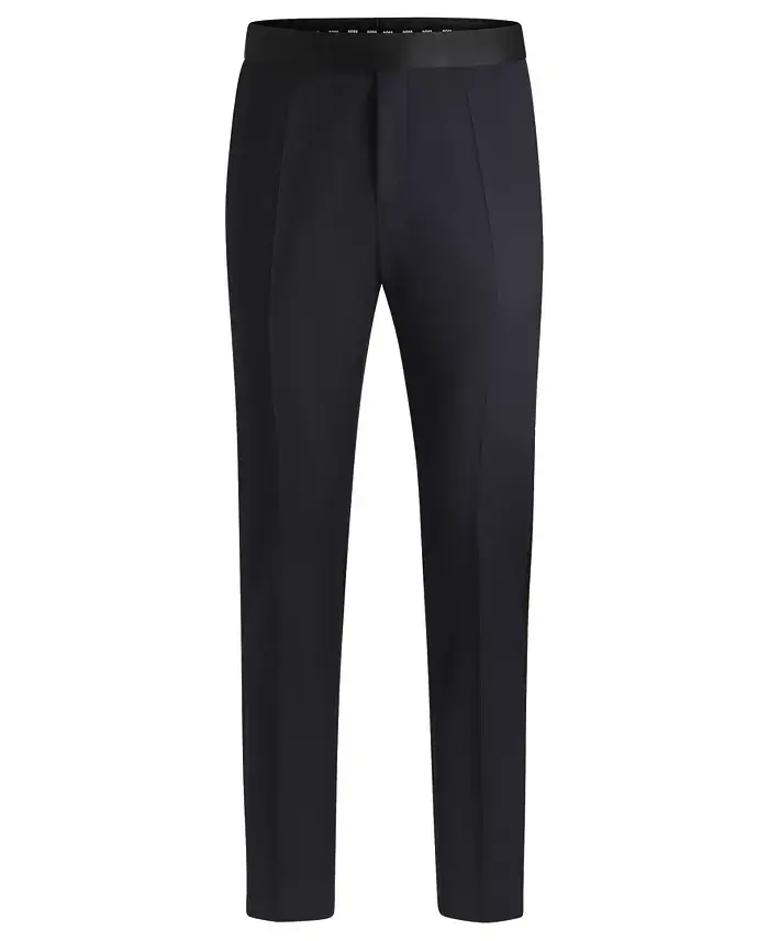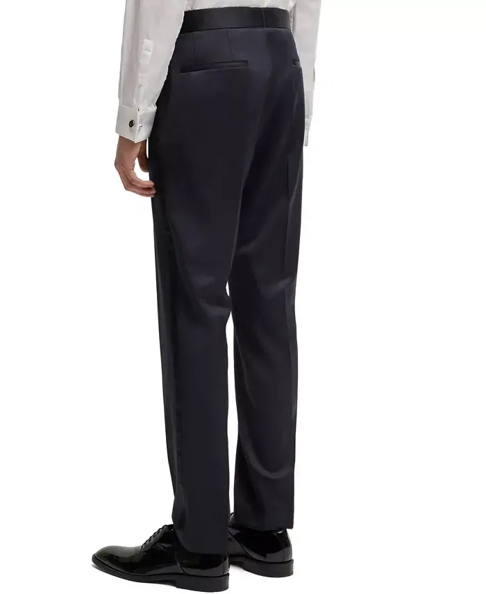 Поднимите свой стиль на новый уровень с помощью классических брюк-смокингов облегающего кроя от BOSS menswear. Эти брюки из ткани саржевого переплетения, обогащенные тональными переходами из шелковой смеси для формального стиля, изготовлены из ткани саржевого переплетения. В соответствии с нашей концепцией ответственного производства, мы используем не менее 60% более экологичного сырья в наших продуктах. Таким образом, вы не только будете выглядеть стильно, но и сделаете выбор, заботящийся об окружающей среде. Рост модели 188 см (6'2"), обхват груди 96 см (38"), обхват талии 74 см (29") и обхват бедер 91 см (36"), размер 32R. Эти облегающие брюки, облегающие фигуру, создают современный и элегантный силуэт. Деталь со стрелками подчеркивает классический и изысканный вид брюк. Французские карманы и задние прорезные карманы обеспечивают как практичность, так и элегантный штрих в дизайне брюк. Качество шерстяной ткани и роскошная текстура пояса из шелка/полиэстера делают эти брюки идеальным выбором для ваших особых случаев. Легко чистятся в химчистке и сохраняют свою первоначальную элегантность на долгие годы. Импортный продукт и отражает качество BOSS. Эти брюки - не просто одежда, а выражение стиля. Вы можете создать безупречный образ, сочетая их с пиджаком-смокингом, и привлечь всеобщее внимание на особых приемах и мероприятиях. Эти брюки-смокинги, которые станут незаменимой частью вашего гардероба, обеспечат вам как комфорт, так и элегантность. Выберите облегающие брюки-смокинги BOSS, чтобы почувствовать себя особенным и выразить свой стиль.