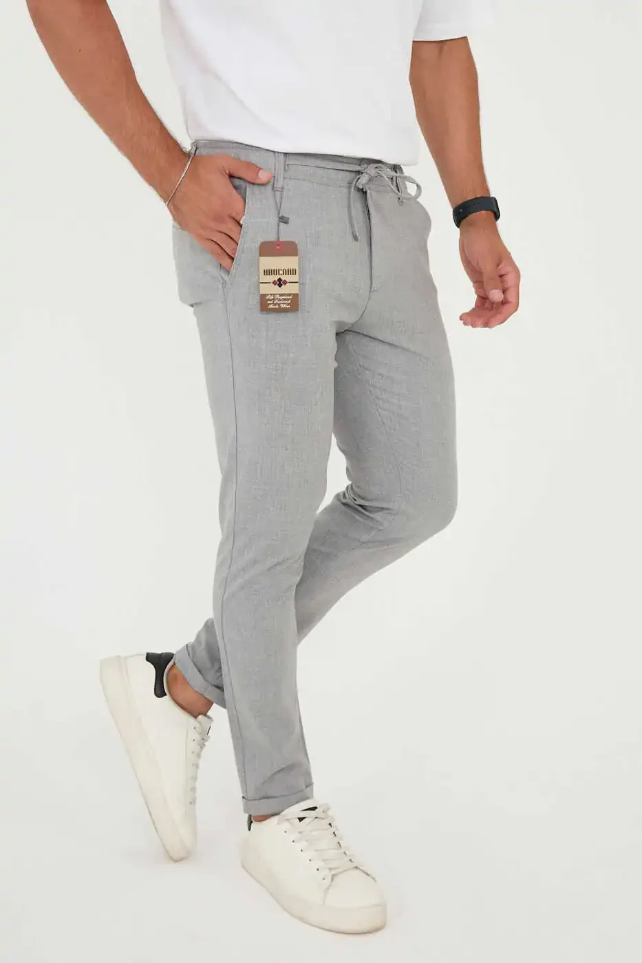 Мужские джоггеры Slimfit с полуэластичной талией и двойным манжетом из серой ткани - Стиль и комфорт в одном