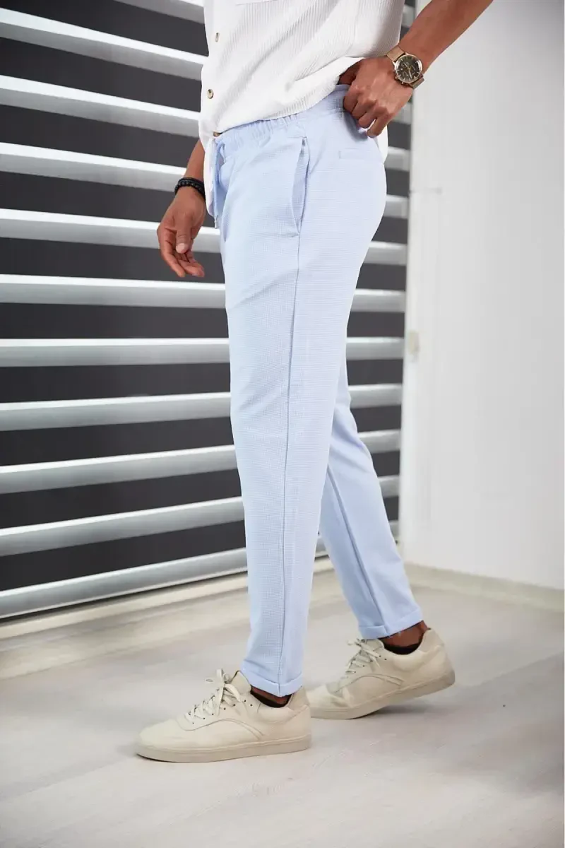 Erkek Slim Fit Mavi Jogger Pantolon, şıklığı ve rahatlığı bir araya getiren özel bir tasarıma sahiptir. Yüksek kaliteli desenli kumaşı ve likralı yapısı sayesinde gün boyu konforlu bir kullanım sunarken, modern görünümüyle de dikkat çeker. Jack Caprio güvencesiyle sunulan bu pantolon, kampanyalı fiyatıyla kaçırılmaması gereken bir fırsattır. Slim fit kesimi vücuda tam otururken, hareket özgürlüğünüzü kısıtlamaz. Mavi rengi ve double paça detayıyla trend bir görünüm elde etmenizi sağlar. Bu jogger pantolon, sportif aktivitelerinizden günlük kullanıma kadar her ortamda rahatlıkla tercih edebileceğiniz çok yönlü bir parçadır. Esnek bel yapısı ve dört cepli tasarımı pratik kullanım imkanı sunarken, astarlı yapısı iç göstermeyi engelleyerek uzun süreli kullanım için ekstra koruma sağlar. Pamuk ve polyester karışımı kumaşı sayesinde dayanıklıdır ve uzun ömürlüdür. Orta kalınlıktaki kumaşı mevsim geçişlerinde ideal bir tercihtir, serinlik ve konfor sağlar. Çizgili deseniyle modern ve dinamik bir stil oluştururken, lastikli bel detayı sayesinde kolayca giyilip çıkarılabilir. Gardırobunuzun vazgeçilmez parçası olacak bu jogger pantolon, stilinizi bir adım öne taşıyacak. Günlük kombinlerinizi zenginleştirecek, farklı ayakkabı ve üst giyim seçenekleriyle kolayca uyum sağlayacak. Hem şık hem de rahat olmak isteyen erkekler için ideal bir seçimdir. Yüksek kaliteli malzemesi ve özenli işçiliği sayesinde uzun yıllar boyunca kullanabileceğiniz bir üründür. Double paça tasarımı, pantolona modern bir dokunuş katarken, aynı zamanda farklı ayakkabı stilleriyle de uyum sağlar. İster spor ayakkabılarla, ister günlük ayakkabılarla kombinleyerek tarzınızı yansıtabilirsiniz. Bu jogger pantolon, hem tarz sahibi olmak isteyen, hem de konforundan ödün vermek istemeyen erkekler için mükemmel bir seçenektir.
