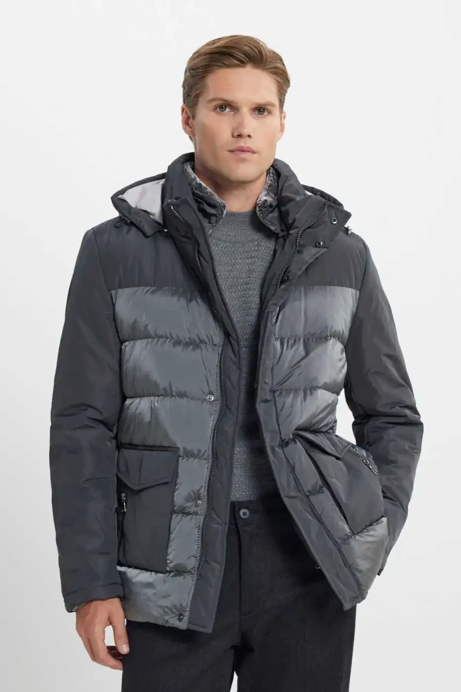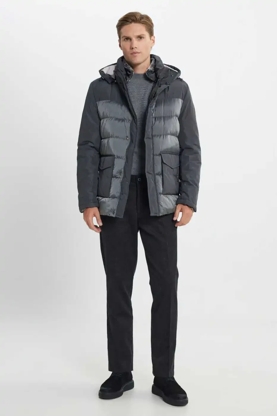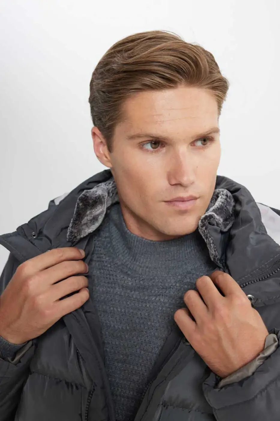 мужское пальто, антрацитовое пальто, стандартная посадка, обычный крой, стойка, защита от холода, зимнее пальто, мужская одежда