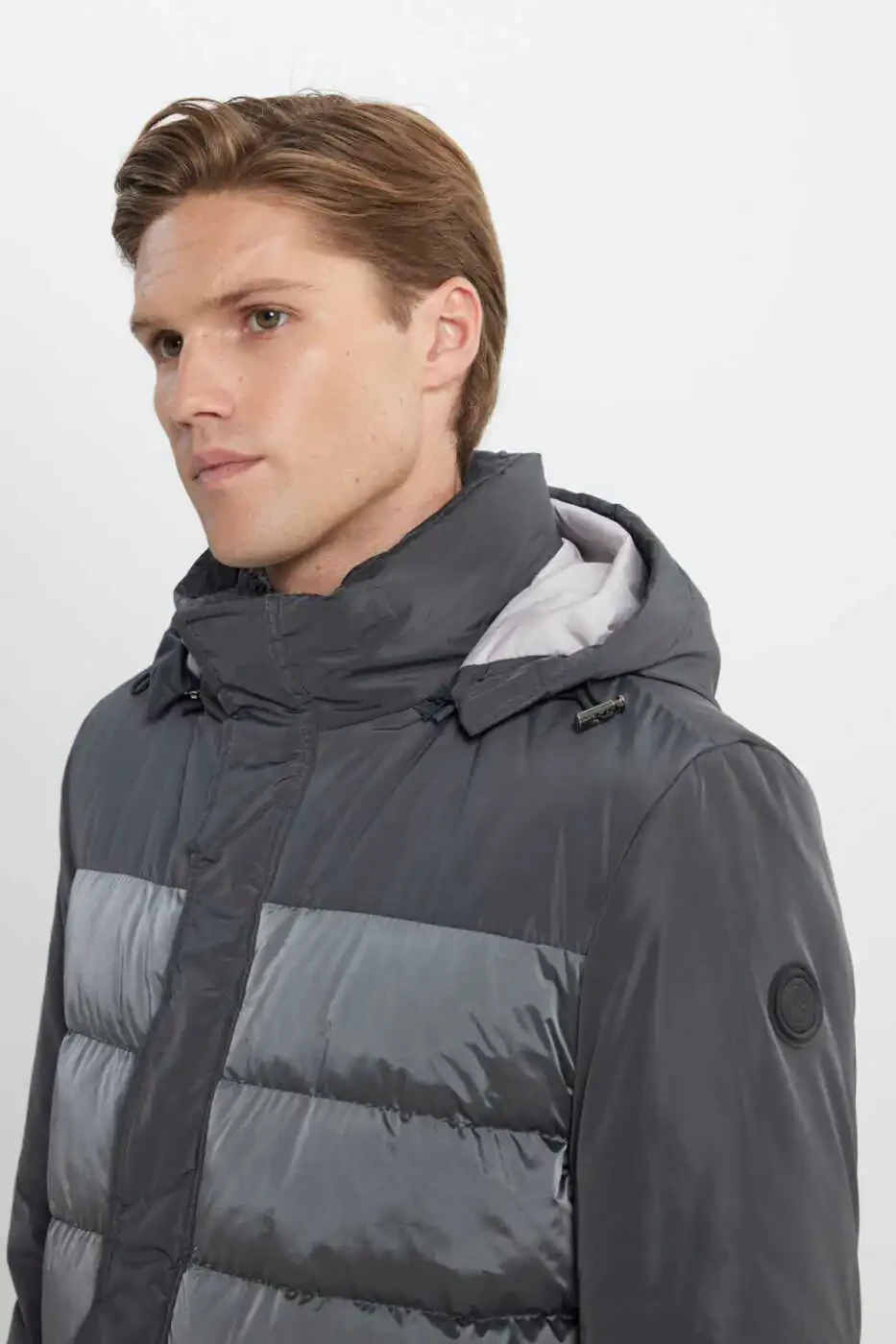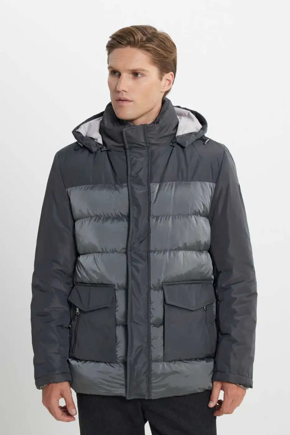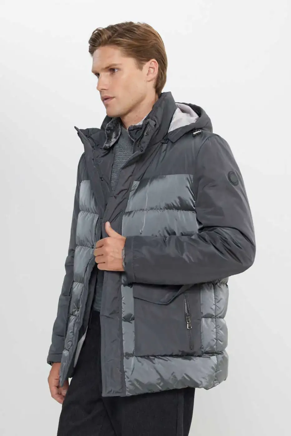 мужское пальто, антрацитовое пальто, стандартная посадка, обычный крой, стойка, защита от холода, зимнее пальто, мужская одежда