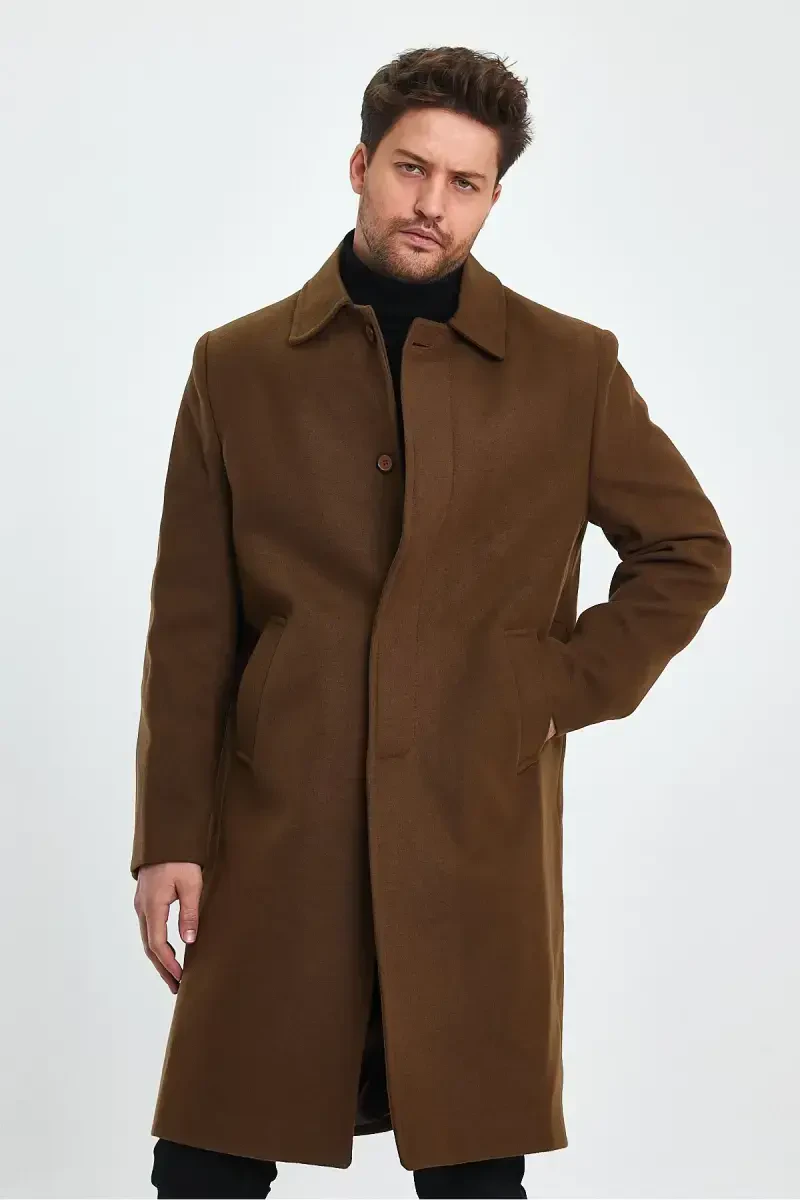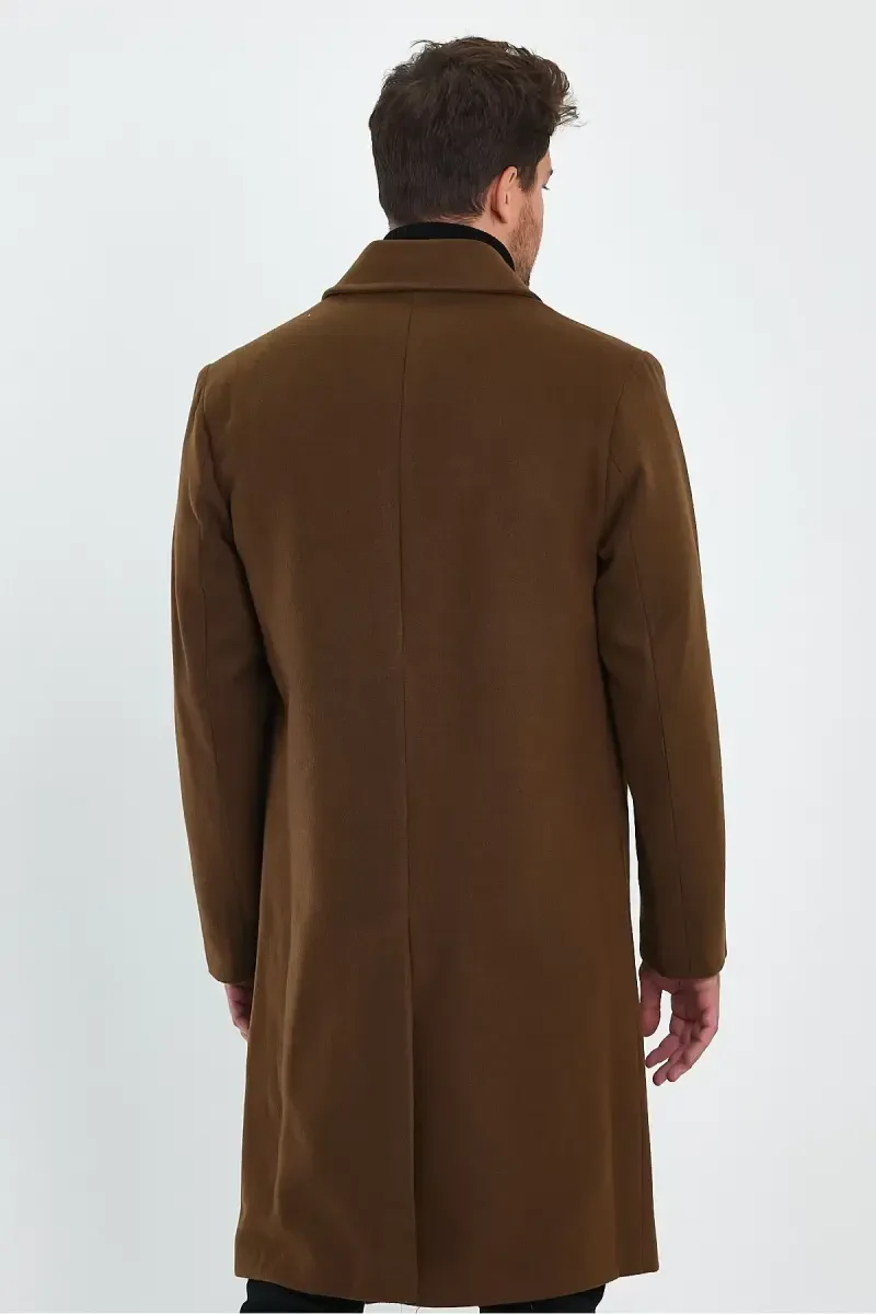 Мужское длинное кашемировое пальто Regular Fit табачного цвета - это не просто предмет одежды, а выражение стиля. С этим пальто, которое является выбором современных и стильных мужчин, заботящихся о себе, вы всегда будете привлекать внимание.