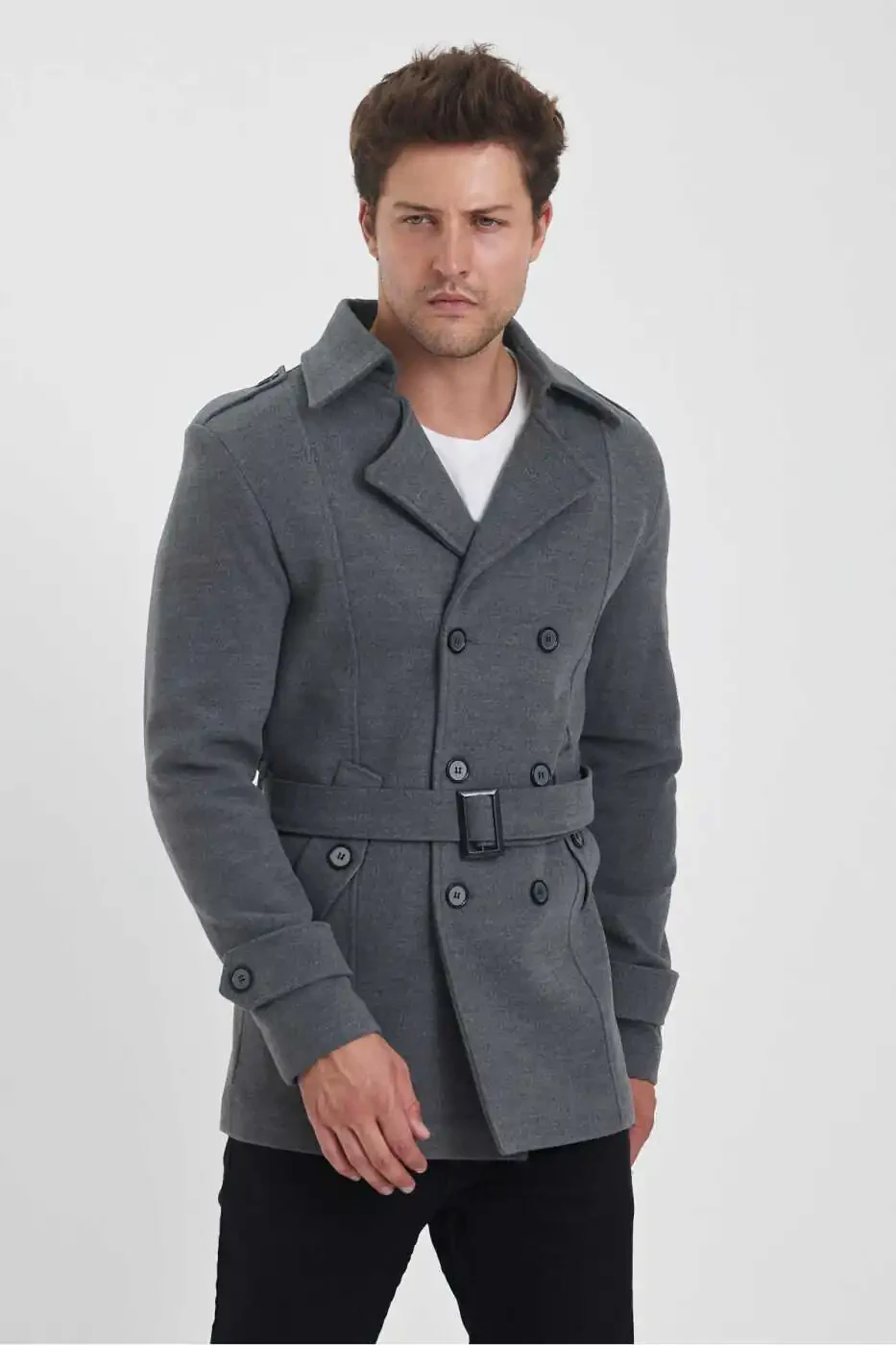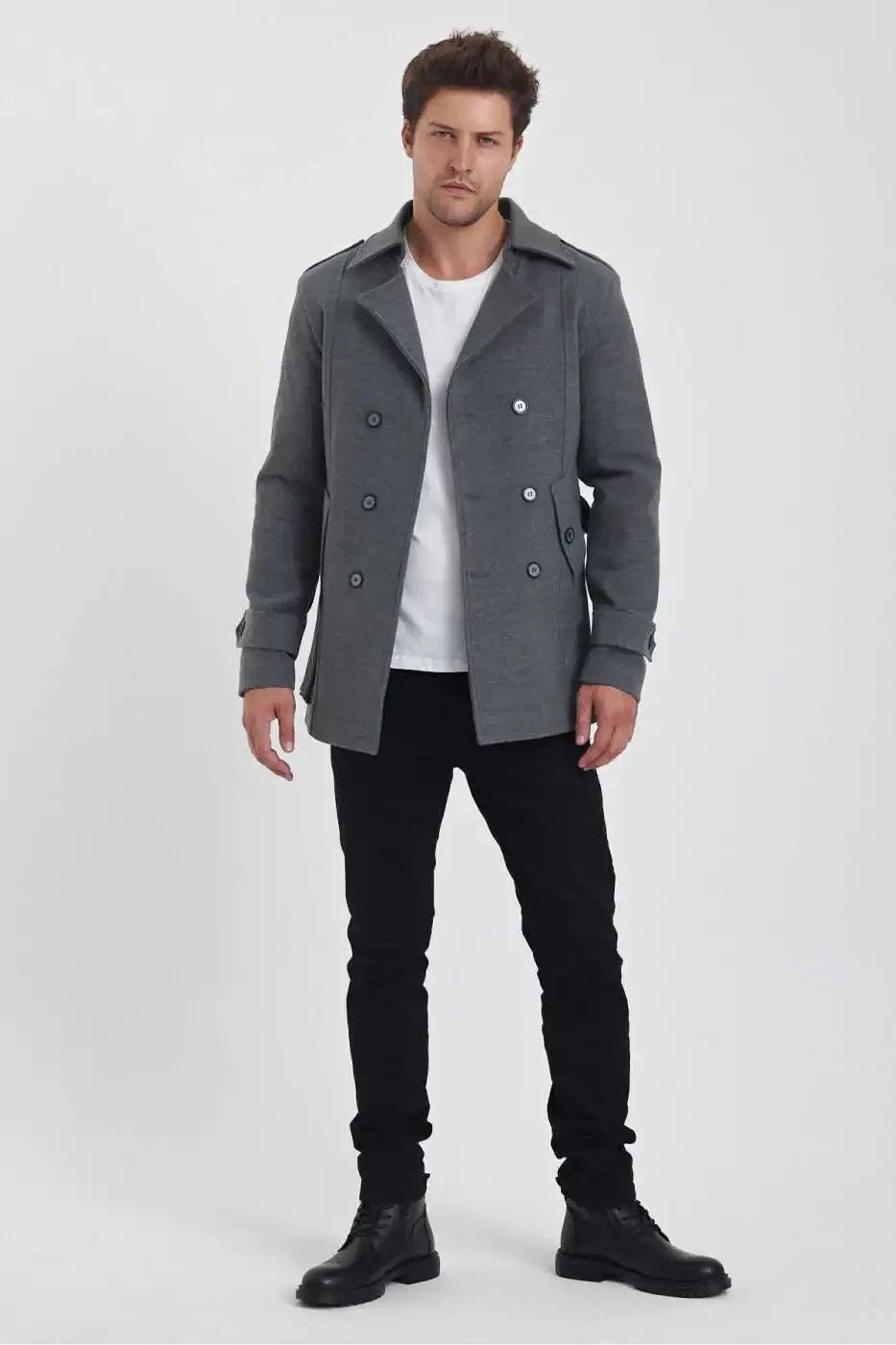 Мужское серое двубортное пальто приталенного кроя из кашемира — практичный вариант для повседневной носки. Вы можете выбрать его для деловых встреч, особых случаев или когда вам хочется выглядеть стильно в повседневной жизни.
