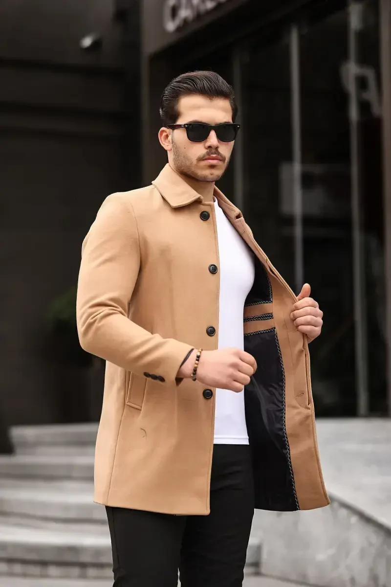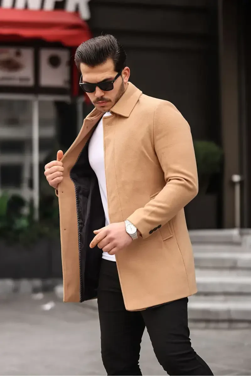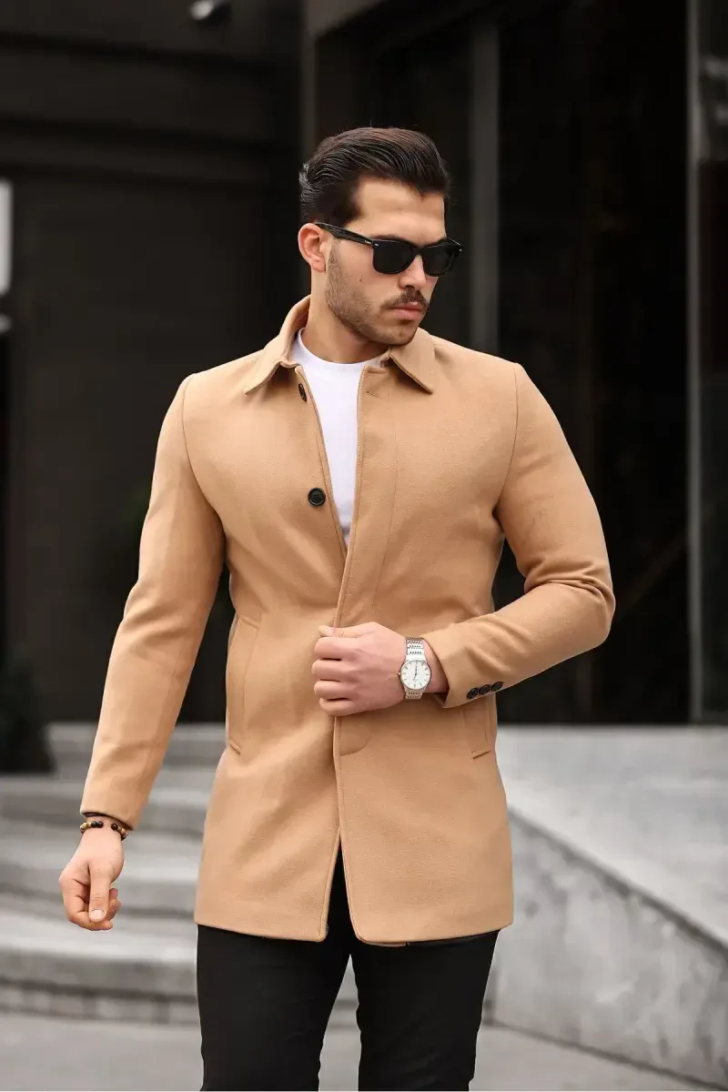 Мужское приталенное пальто-бушлат с шерстью и воротником рубашкой из коллекции Vizyon от MeroLife – это сочетание элегантности и комфорта, которое станет незаменимой вещью в вашем гардеробе. Этот эксклюзивный дизайн подчеркивает стильную осанку современного мужчины и обеспечивает превосходную защиту в холодную погоду. Приталенный крой (slim fit) создает элегантный силуэт, облегающий тело. Этот крой идеально подходит как для повседневной носки, так и для особых случаев. Деталь в виде воротника рубашки придает пальто особый вид, сочетая в себе классические и современные линии. Благодаря этому вы можете легко сочетать его как со спортивной, так и с классической одеждой. Длинные рукава обеспечивают дополнительную защиту в холодную погоду, позволяя вам не жертвовать своей элегантностью. Боковые карманы обеспечивают простоту использования и добавляют элегантный штрих к общему дизайну пальто. Полная подкладка создает ощущение комфорта внутри пальто и поднимает ваш опыт ношения на новый уровень. Одинарный разрез позволяет вам сохранить элегантность, не ограничивая свободу движений. Высококачественная смесовая шерстяная ткань придает пальто роскошный вид и в то же время повышает его теплоизоляционные свойства. Благодаря этому вы можете демонстрировать свой стиль, не замерзая даже в холодные зимние дни. Длинное классическое зимнее пальто-бушлат Mero Life Ezel – это не просто предмет одежды, это стиль жизни. Этот эксклюзивный дизайн отражает качество и элегантность в каждой детали. Наша продукция на 100% произведена в Турции. При заказе, пожалуйста, используйте таблицу размеров на изображениях товара. Поскольку оно приталенное (slim fit), рекомендуется брать на 1 или 2 размера больше, чем ваш обычный размер. Наша продукция на 100% произведена в Турции. Есть внутренний карман. Долговечное и не скатывается.