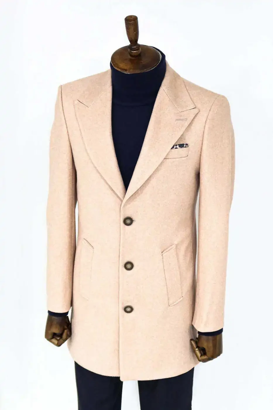 мужское пальто, шерстяное пальто, пальто с широким воротником, светло-розовое пальто, пальто Wessi