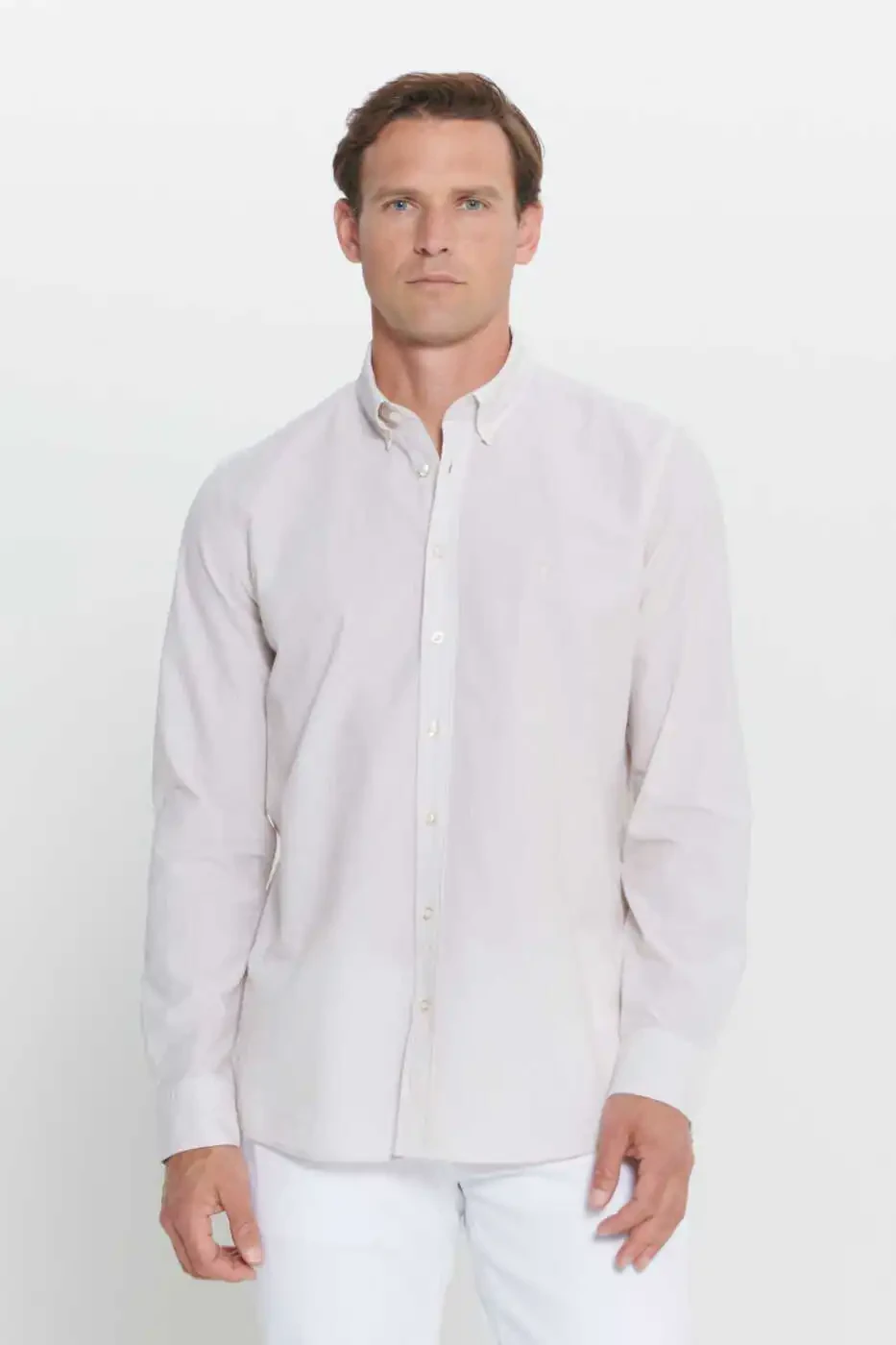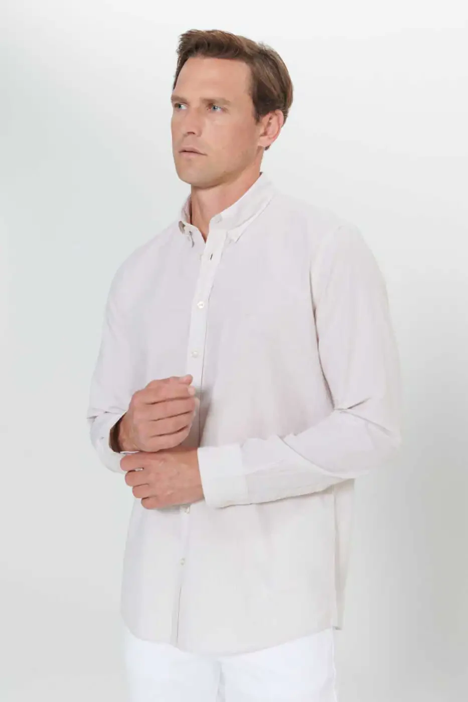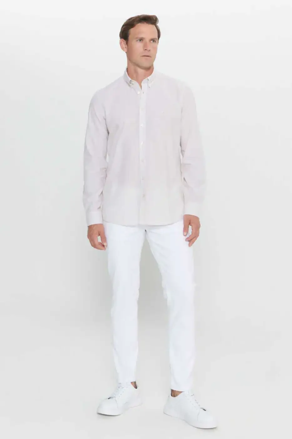 Мужская бело-бежевая рубашка Slim Fit с узким кроем и воротником на пуговицах станет незаменимой вещью в вашем гардеробе, сочетая в себе элегантность и комфорт. Этот специальный дизайн, отражающий стиль современного мужчины, предлагает идеальный вариант как для повседневного использования, так и для особых случаев. Однотонный рисунок и длинные рукава обеспечивают вневременной вид, а облегающий/узкий крой идеально облегает ваше тело, создавая подтянутый силуэт. Сочетание белого и бежевого цветов позволяет легко адаптироваться к любой комбинации. Благодаря высококачественной ткани из смеси 99% хлопка и 1% эластана вы будете чувствовать себя комфортно в течение всего дня. Натуральная воздухопроницаемость хлопка помогает предотвратить потоотделение и сохранить комфорт вашей кожи, а содержание эластана обеспечивает свободу движений, не ограничивая ваше тело. Деталь с воротником на пуговицах придает рубашке классический и элегантный вид, а также позволяет персонализировать свой стиль, сочетая ее с различными галстуками и бабочками. Эта рубашка — идеальный выбор для мужчин, которые хотят выглядеть стильно и ухоженно на работе, на особых мероприятиях или во время отдыха на выходных. Вы можете создать повседневный стиль с джинсами или более формальный вид с брюками. Вы также можете дополнить свой стиль, сочетая его с аксессуарами. Размер M на модели может дать вам представление о том, как изделие будет сидеть на вас. Параметры модели: Рост: 1,88 см, Обхват груди: 98 см, Обхват талии: 75 см, Обхват бедер: 99 см. Вы можете ознакомиться с таблицей размеров, чтобы определить свой размер и добиться безупречного внешнего вида, выбрав правильный размер. Мужская бело-бежевая рубашка Slim Fit с узким кроем и воротником на пуговицах — отличный кандидат на то, чтобы стать одной из самых любимых вещей в вашем гардеробе благодаря качественным материалам, стильному дизайну и удобству использования. Это идеальный выбор для мужчин, которые ищут сочетание элегантности и комфорта. Эта особая рубашка, которую можно рассматривать как подарок себе и своим близким, — один из лучших способов выразить свой стиль. Закажите сейчас и сделайте свой стиль на шаг вперед!