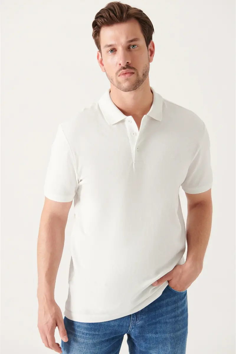 AVVA Erkek Beyaz %100 Pamuk Serin Tutan Polo Yaka T-shirt ile yazın sıcak günlerinde dahi şıklığınızdan ödün vermeden konforun tadını çıkarın! Bu özel tasarım polo yaka t-shirt, %100 pamuk pike kumaşı sayesinde gün boyu nefes alabilen ve serin tutan bir deneyim sunar. Regular fit standart kesimi ile vücudunuza tam oturarak rahat bir kullanım sağlarken, şık ve modern bir görünüm elde etmenize yardımcı olur. Gündelik kullanımın yanı sıra, özel etkinliklerinizde de rahatlıkla tercih edebileceğiniz bu t-shirt, gardırobunuzun vazgeçilmez parçalarından biri olacak. Üç düğmeli polo yaka detayı, klasik ve zarif bir dokunuş katarken, beyaz rengi her kombine kolayca uyum sağlar. AVVA kalitesiyle üretilen bu t-shirt, uzun ömürlü kullanım için özel olarak tasarlanmıştır. Stüdyo çekimlerindeki ışık farklılıklarından dolayı renklerde hafif değişiklikler olabileceğini lütfen unutmayın. Modelin boyu 185 cm, göğsü 100 cm, beli 79 cm ve baseni 99 cm olup, numune bedeni M'dir. Bu bilgiler, size doğru beden seçiminde yardımcı olacaktır. Kampanya fiyatından yararlanmak için acele edin, stoklar tükenmeden siparişinizi verin! Trendyol güvencesiyle 15 gün içinde ücretsiz iade imkanı sunulmaktadır. Detaylı bilgi için iade koşulları sayfasını ziyaret edebilirsiniz. AVVA Erkek Beyaz Polo Yaka T-shirt ile tarzınızı yansıtın, konforu hissedin!