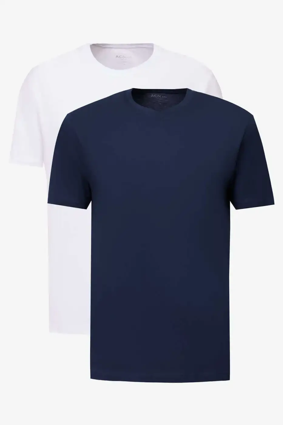 Мужская футболка, облегающая футболка, футболка узкого кроя, футболка в упаковке по 2 штуки, белая футболка, темно-синяя футболка, хлопковая футболка, современная мужская одежда, стильная футболка, удобная футболка