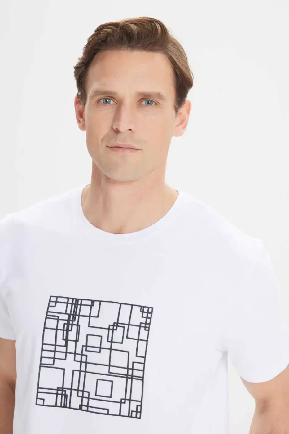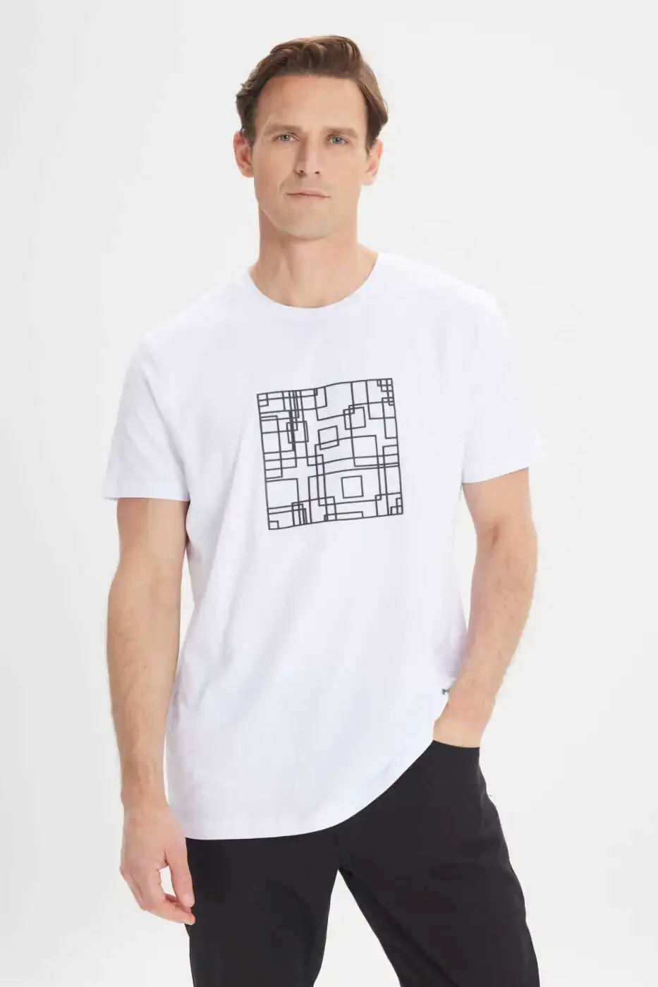 Познакомьтесь с нашей мужской белой футболкой Slim Fit из эластичного хлопчатобумажного полотна с принтом, которая сочетает в себе стиль и комфорт! Эта футболка, идеально подходящая для повседневной носки, благодаря своему элегантному дизайну и непревзойденному комфорту станет незаменимой вещью в гардеробе каждого мужчины. Изготовленная из высококачественного хлопкового материала, наша футболка обеспечивает воздухопроницаемость и комфорт в течение всего дня, а дизайн Slim Fit идеально подчеркивает фигуру, создавая стильный образ. Благодаря эластичной структуре она не стесняет движений и позволяет свободно двигаться весь день. Белый цвет легко сочетается с любой вашей одеждой и добавляет вашему стилю изысканности. Сочетайте её с джинсами и кроссовками для повседневного образа или с элегантными брюками и туфлями для более формального стиля – эта универсальная футболка всегда будет отличным выбором. Воздухопроницаемый хлопковый материал сохранит вас прохладными и комфортными даже в жаркую погоду, а прочная конструкция обеспечит длительный срок службы. Принты, выполненные с помощью высококачественной технологии печати, не выцветают даже при длительном использовании и сохраняют свою яркость. Если вы ищете стильный и комфортный подарок для себя или близких, наша мужская белая футболка Slim Fit из эластичного хлопчатобумажного полотна с принтом станет отличным выбором. Эта футболка, сочетающая в себе качественный материал, стильный дизайн и комфорт, подарит вам незабываемые ощущения – добавьте её в корзину прямо сейчас!