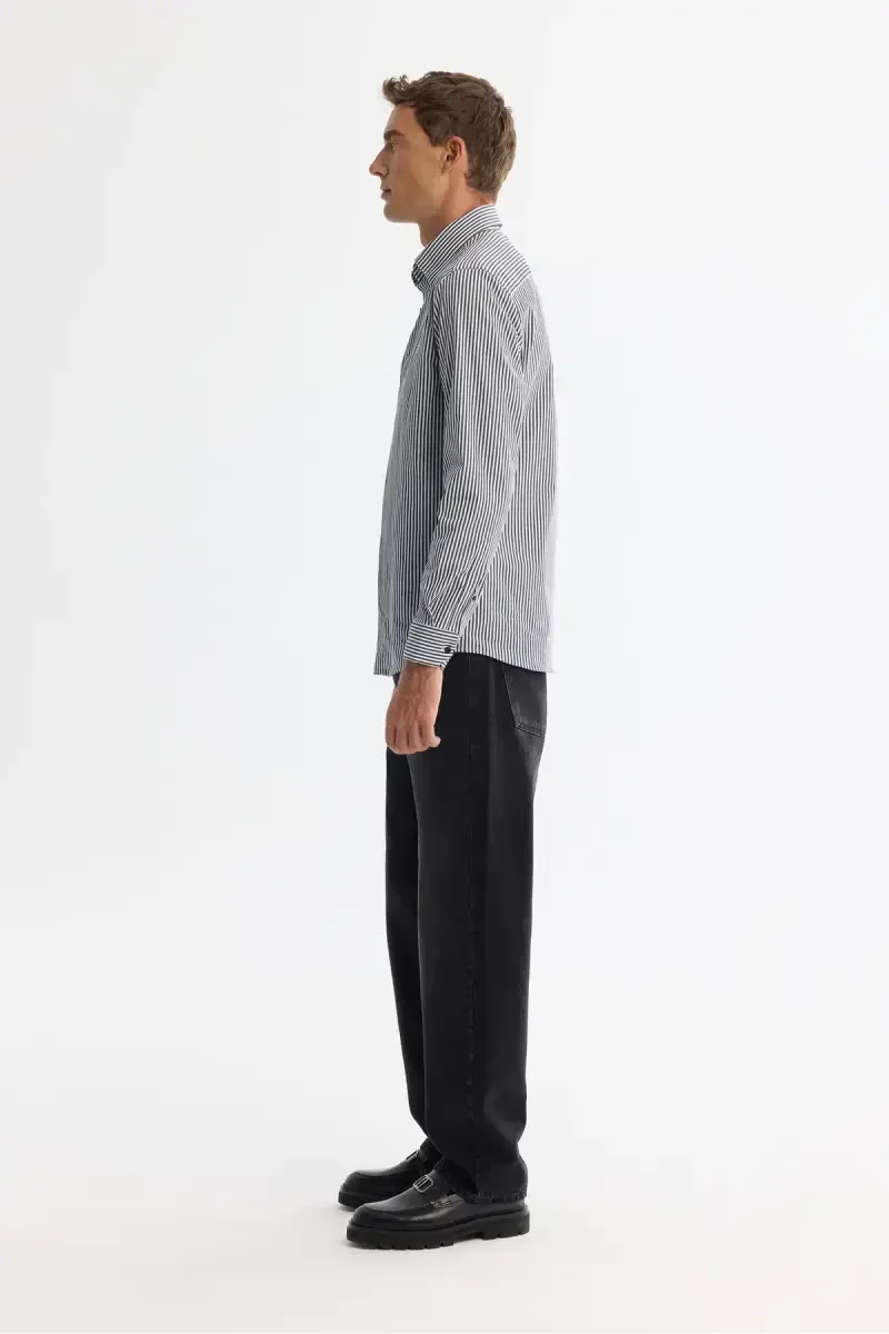 Мужская рубашка, черная рубашка, воротник на пуговицах, легко гладится, облегающий крой, полосатая рубашка, хлопковая рубашка, эластичная ткань, AVVA, классическая рубашка
