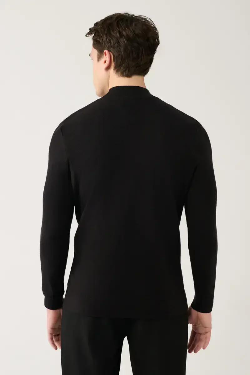 Мужской Черный Трикотажный Свитер - идеальный выбор, чтобы добавить стиль и комфорт вашему повседневному образу. Его мягкая текстура и элегантный дизайн привлекают внимание. Деталь полуводолазки придает классический вид, а крой regular fit обеспечивает комфортную посадку. Его текстурная ткань согревает и придает стильный вид.
