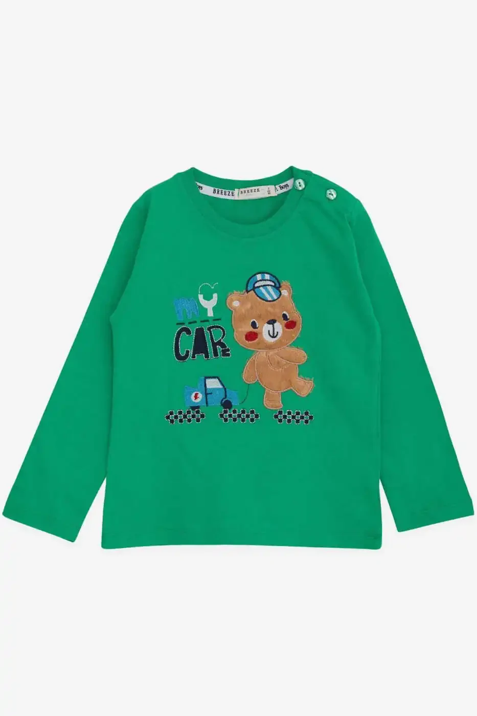 Футболка для мальчика с принтом медвежонка - Хлопок и длинные рукава