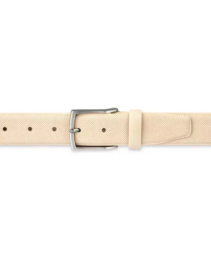 Men's AlfaTech Stretch Dress Belt. This stretch belt is made of bonded leather, featuring a feather edge and a silver-tone buckle.