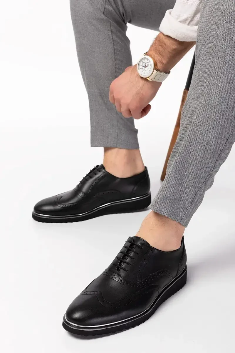 Мужские классические свадебные и вечерние туфли - Черные с никелированной отделкой - идеальный вариант для завершения вашего стиля на особых мероприятиях и элегантных приемах. Неподвластная времени элегантность черного цвета приобретает современный оттенок благодаря никелированной отделке, что делает эту обувь уникальной. Независимо от того, с чем вы ее сочетаете - со свадебным костюмом или вечерним нарядом, она обеспечит вам ослепительный вид в любой ситуации. Высококачественные материалы, используемые в дизайне обуви, обеспечивают долговечность и превосходный комфорт. Каждая деталь формируется руками мастеров, создавая безупречное мастерство. Специальная ткань, используемая во внутренней подкладке, позволяет вашим ногам дышать в течение дня и предотвращает потоотделение. Структура подошвы обеспечивает максимальную поддержку и устойчивость во время ходьбы, сводя усталость к минимуму. Никелированные детали придают обуви изысканный вид, а благородство черного цвета обеспечивает идеальную гармонию. Эта обувь выделяется не только своим внешним видом, но и комфортом, который она предлагает. Даже если вы часами стоите на ногах в особые дни, вы не почувствуете дискомфорта в ногах. Мужские классические свадебные и вечерние туфли - Черные с никелированной отделкой станут незаменимой частью вашего гардероба и очаруют вас своей элегантностью в любой обстановке. Это идеальный выбор для мужчин, которые хотят выделиться на свадьбах, помолвках, выпускных церемониях или особых приемах. Благодаря качественным материалам, стильному дизайну и удобной конструкции эта обувь превзойдет ваши ожидания и поможет вам создать незабываемые воспоминания. Она повысит вашу уверенность в каждом шаге и позволит вам наилучшим образом выразить свой стиль. Эта обувь - не просто аксессуар, а отражение вашей личности. Эта обувь, сочетающая в себе благородство черного цвета и современность никелированной отделки, всегда будет на шаг впереди вас.