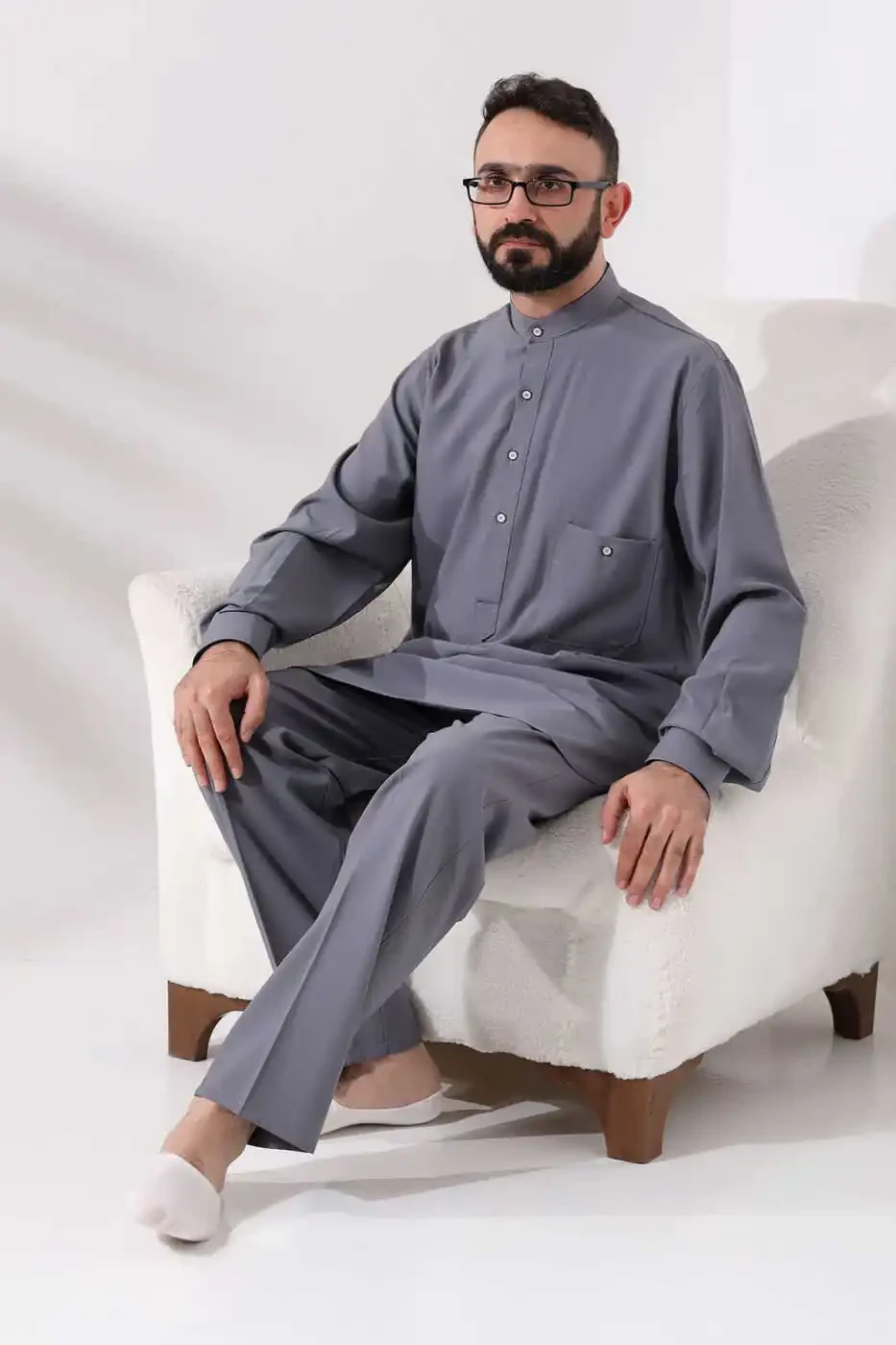 Мужской костюм Берат для хаджа и умры Двухкомпонентный комплект вискоза Афгани серый