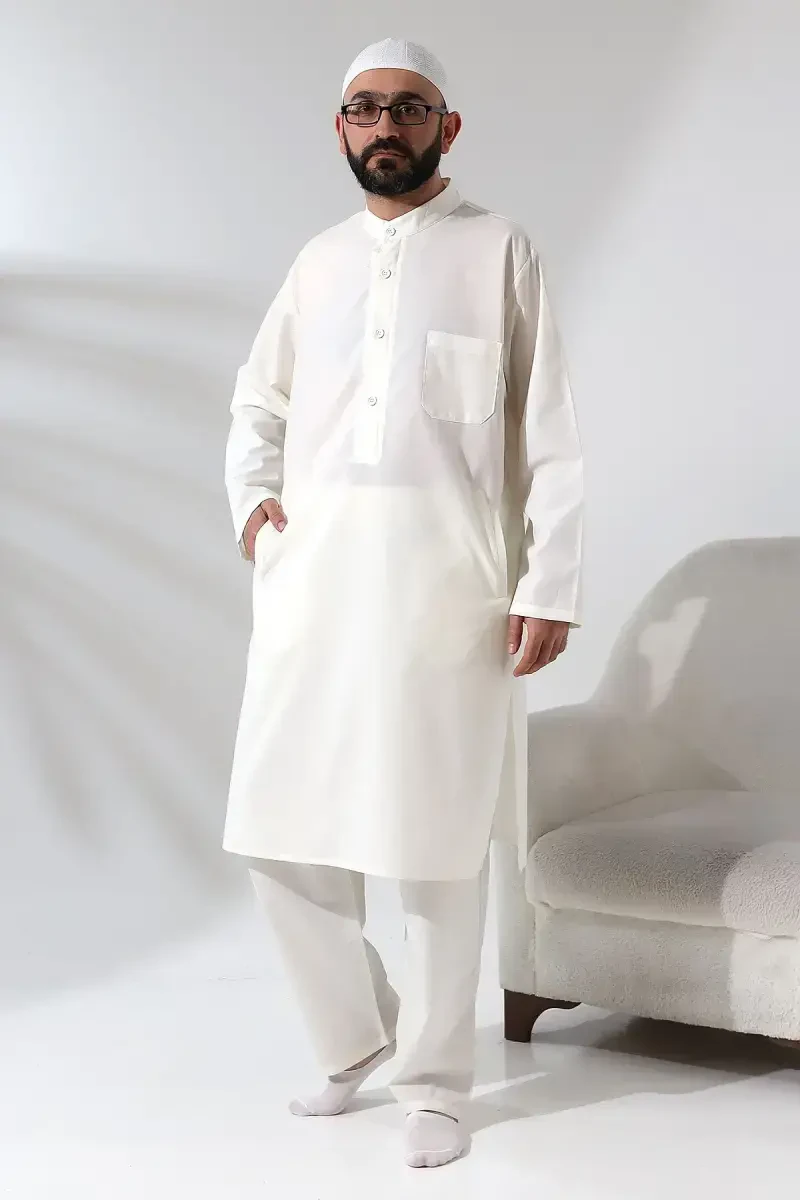 Мужской костюм для хаджа и умры, двойной комплект афганского стиля, кремовый-кремовый - это специальный дизайн, который будет сопровождать вас в ваших паломничествах в хадж и умру, предлагая комфорт и практичность в одном. Этот костюм, изготовленный из ткани терикотон, выделяется своей дышащей структурой, которая позволит вам чувствовать себя комфортно даже в жарких погодных условиях. Вам не придется жертвовать комфортом своей одежды, совершая свои молитвы в мире. Афганский крой не ограничивает вашу свободу движений и обеспечивает комфортное использование в течение всего дня. Кремовый цвет символизирует простоту и элегантность, помогая вам выглядеть в соответствии с вашей духовностью. Костюм состоит из двух частей: нижней и верхней. Верхняя часть не облегает ваше тело благодаря широкому крою и предотвращает потоотделение. Нижняя часть имеет эластичный пояс и регулируемую завязку, что позволяет легко адаптировать ее к любому размеру. Кроме того, вы можете безопасно носить свои личные вещи благодаря удобным карманам. Этот костюм - вариант, который вы можете с комфортом использовать не только во время хаджа и умры, но и в повседневной жизни. Благодаря своей легкости и простоте глажки он обеспечивает большое удобство в ваших путешествиях. Минимальное количество складок помогает вам всегда выглядеть ухоженно и опрятно. Мужской костюм для хаджа и умры, двойной комплект афганского стиля, кремовый-кремовый - это идеальный выбор, который сочетает в себе качество и комфорт и будет сопровождать вас в вашем духовном путешествии. Он помогает вам совершать свои молитвы более комфортно и мирно, а также не позволяет вам жертвовать своей элегантностью. Этот специальный дизайн удовлетворит ваши ожидания как своей практичностью, так и эстетичным внешним видом и внесет свой вклад в незабываемые впечатления. Этот костюм, который вы предпочтете при подготовке к хаджу и умре, адаптируется к вашей духовной атмосфере и подарит вам моменты, полные мира. И верхняя, и нижняя части имеют одинаковый оттенок цвета. Это сохраняет целостность одежды и обеспечивает стильный внешний вид. Легкость ткани терикотон не утяжеляет вас во время длительных молитв и не ограничивает ваши движения. Кроме того, благодаря долговечности ткани вы можете использовать ее как новую в течение многих лет. Регулируемая деталь завязки на талии обеспечивает индивидуальную посадку и гарантирует, что вам будет комфортно в течение всего дня. Карманы идеально подходят для ношения с собой телефона, четок или других мелких предметов. Благодаря своей легкой в уходе особенности вы всегда можете содержать свою одежду в чистоте и порядке. Одежда, которую вы носите во время хаджа и умры, имеет большое духовное значение. Этот костюм подарит вам незабываемые впечатления, позволяя вам стильно и элегантно выглядеть, выполняя свои религиозные обязанности. Мужской костюм для хаджа и умры, двойной комплект афганского стиля, кремовый-кремовый, станет вашим лучшим компаньоном в вашем духовном путешествии. Эта особая одежда - это не просто одежда, но и символ, отражающий вашу духовность. Этот костюм, каждая деталь которого тщательно продумана, станет незабываемой частью ваших паломничеств в хадж и умру. Вы можете положиться на комфорт своей одежды и сосредоточиться на своем духовном оп