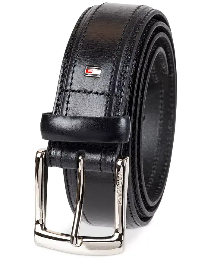 Men's Stitched Classic Dress Leather Belt, Material: Leather, Sizes: 30-44, Color: Black, Brown, Navy, Buckle Material: Metal, Buckle Color: Silver