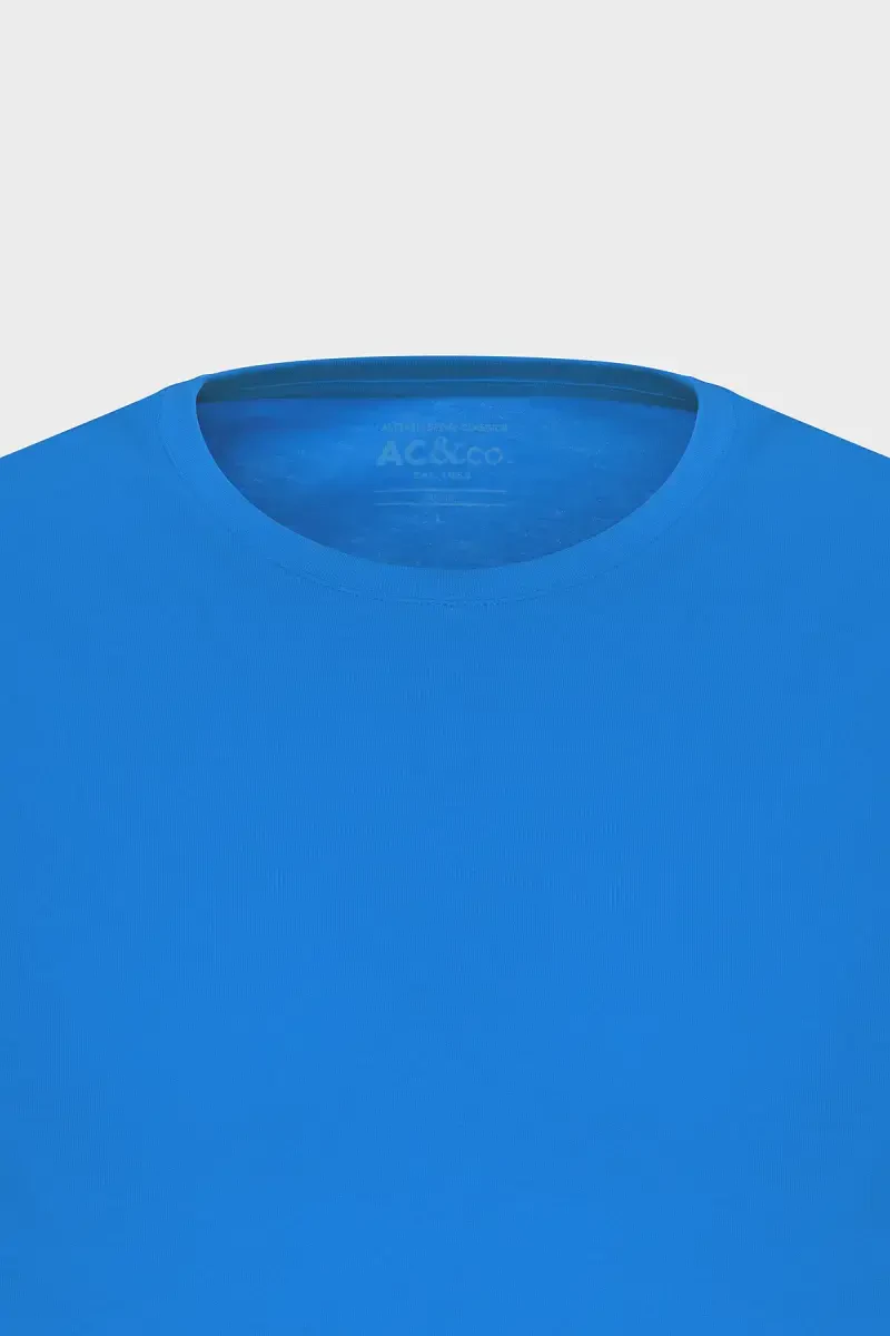 Мужская саксофонно-голубая облегающая футболка | 100% хлопок, базовая футболка с круглым вырезом