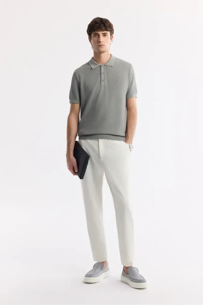 Мужская серая трикотажная футболка-поло Regular Fit с текстурой — претендент на звание одного из самых стильных и удобных вариантов для современного мужчины. Этот специальный дизайн сочетает в себе практичность повседневной носки и элегантность особых случаев, что сделает ее незаменимой вещью в вашем гардеробе. Эта футболка, изготовленная из высококачественной хлопковой трикотажной ткани, которая дышит и мягкая на ощупь в течение всего дня, также обещает длительное использование. Текстурированный вязаный узор добавляет изюминку обычной трикотажной футболке и помогает подчеркнуть ваш стиль. Эта деталь придает вашей одежде изысканный вид и придает тонкий штрих, который выделит вас из толпы. Крой Regular Fit создает силуэт, который не прилегает к телу, удобен и обеспечивает свободу движений. Таким образом, вы можете сохранить свой стиль, не жертвуя комфортом в течение всего дня. Деталь воротника-поло создает классический и неподвластный времени вид. Этот тип воротника, который вы можете легко использовать как в спортивных, так и в элегантных сочетаниях, дает вам возможность экспериментировать с различными стилями. Например, вы можете создать повседневный стиль с джинсами и кроссовками или более элегантный вид с брюками чинос и лоферами. Эта трикотажная футболка легко адаптируется к разным сезонам и разным условиям благодаря своей универсальности. Вы можете носить ее отдельно весной и осенью или создать многослойный стиль, сочетая ее с курткой или кардиганом зимой. Эту трикотажную футболку, которую можно легко предпочесть для работы, поездок на выходные, встреч с друзьями или особых мероприятий, всегда позволит вам выглядеть стильно и ухоженно. Серый цвет легко сочетается с другими вещами в вашем гардеробе, что упрощает создание сочетаний. Будучи нейтральным цветом, его можно легко сочетать с одеждой разных цветов и узоров. Он также дает вам свободу в выборе аксессуаров. Вы можете завершить эту трикотажную футболку стильными часами, кожаным браслетом или ожерельем, которое соответствует вашему стилю, и отразить свой личный стиль. Мужская серая трикотажная футболка-поло Regular Fit с текстурой — это не просто предмет одежды, а выражение стиля. Эта футболка, изготовленная из качественных материалов, с современным дизайном и удобным кроем, является обязательной вещью в гардеробе каждого мужчины. Вы можете привлечь внимание в любой обстановке благодаря этому специальному дизайну, который сочетает в себе элегантность и комфорт.