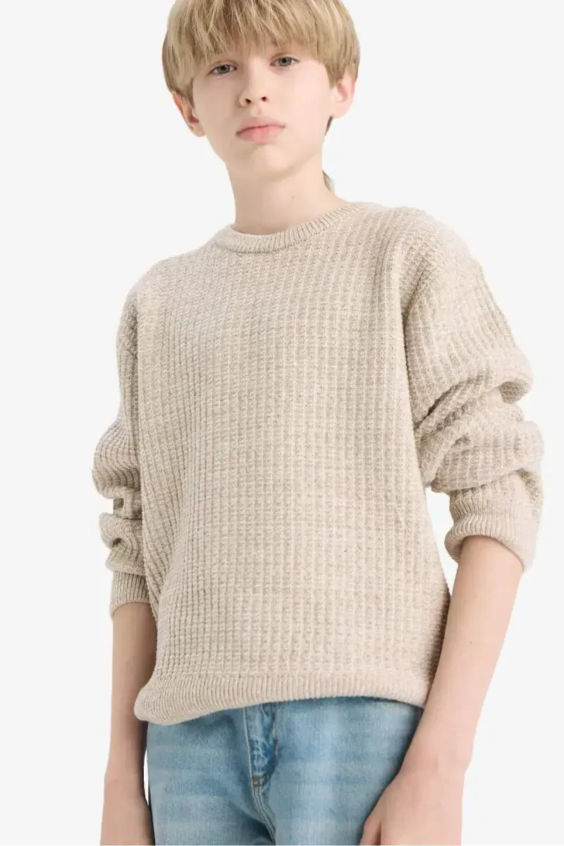 Мужской трикотажный свитер DeFacto серого цвета с круглым вырезом и базовым однотонным дизайном станет незаменимым элементом гардероба маленьких джентльменов! Благодаря трикотажной ткани из смешанного хлопка, этот свитер обеспечивает комфорт в течение всего дня, а круглый вырез придает ему стильный вид. Длинные рукава защищают ваших детей от холода весной и зимой, а базовый однотонный дизайн позволяет сочетать его с любым нарядом. Создайте спортивный образ с джинсами или более классический стиль с брюками чинос; этот свитер в любом случае дополнит образ вашего ребенка. Этот трикотажный свитер, изготовленный с качеством DeFacto, отличается своей прочностью и долговечностью. Этот свитер идеально подходит для активных детей, его можно носить во время игр или в школе. Серый цвет легко сочетается с любым цветом и всегда позволяет вашему ребенку выглядеть стильно. Подчеркните стиль своего ребенка и подарите ему комфортный шик с помощью мужского трикотажного свитера DeFacto серого цвета с круглым вырезом и базовым однотонным дизайном. Этот свитер обязательно должен быть в гардеробе вашего ребенка! Этот свитер, который можно с легкостью выбрать как для повседневной носки, так и для особых случаев, дополнит образ вашего ребенка и придаст ему уверенности в себе. Этот трикотажный свитер, тщательно разработанный компанией DeFacto, не содержит вредных для здоровья вашего ребенка веществ, и вы можете использовать его с чистой совестью. Закажите сейчас и добавьте шик в гардероб своего ребенка!