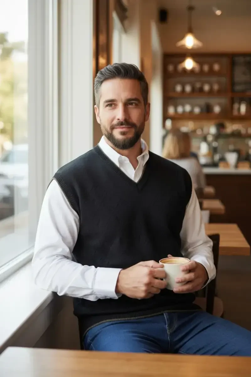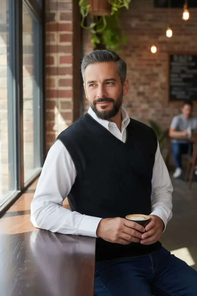 Почувствуйте стиль и тепло этой зимой! Добавьте мужской свитер из толстой трикотажной ткани с V-образным вырезом, с интерлочной вязкой, в свою корзину прямо сейчас.
