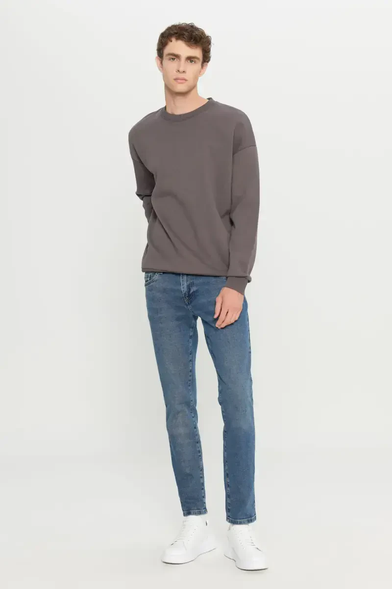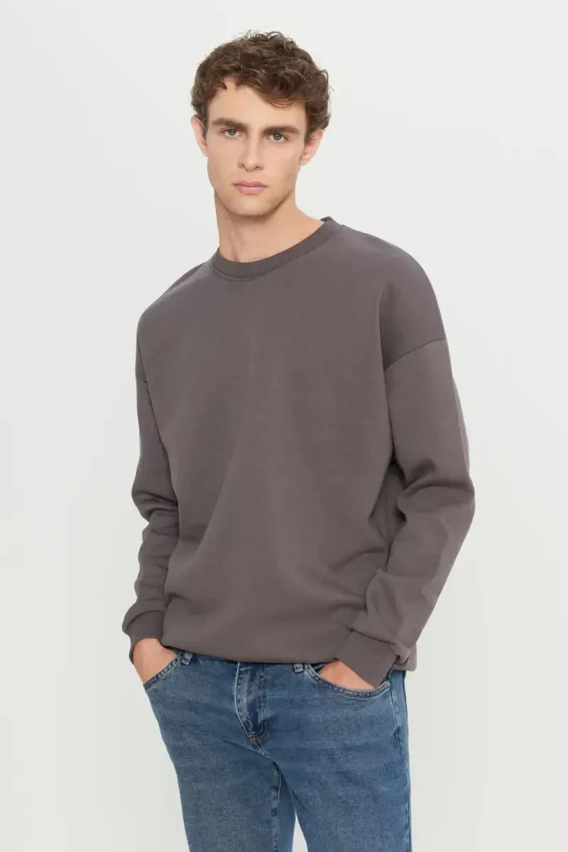 Oversize Polarlı Sweatshirt | Bol Kesim, Pamuklu, Bisiklet Yaka
