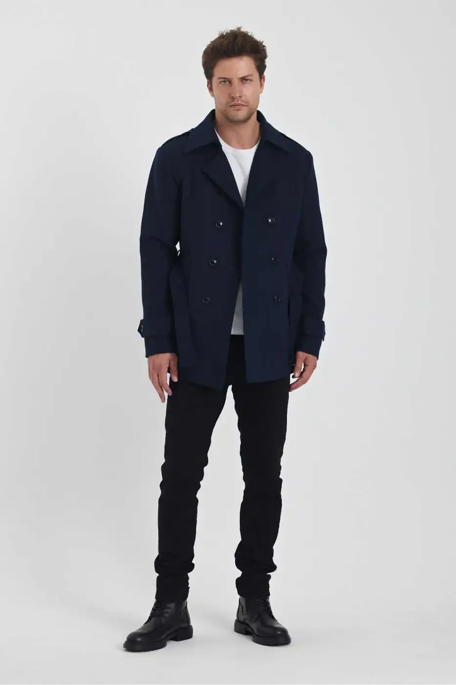 Благодаря качественным материалам, стильному дизайну и идеальной посадке, это мужское темно-синее двубортное пальто приталенного кроя согреет вас в холодные зимние дни, не заставляя вас жертвовать стилем.