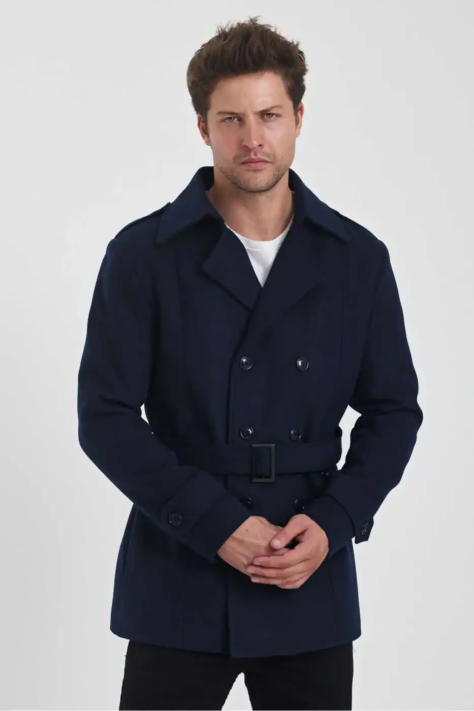 Это мужское темно-синее двубортное пальто приталенного кроя, сочетающее в себе элегантность и тепло, предназначено для того, чтобы согревать вас в холодные зимние дни, не жертвуя стилем.