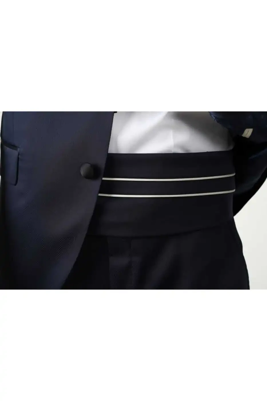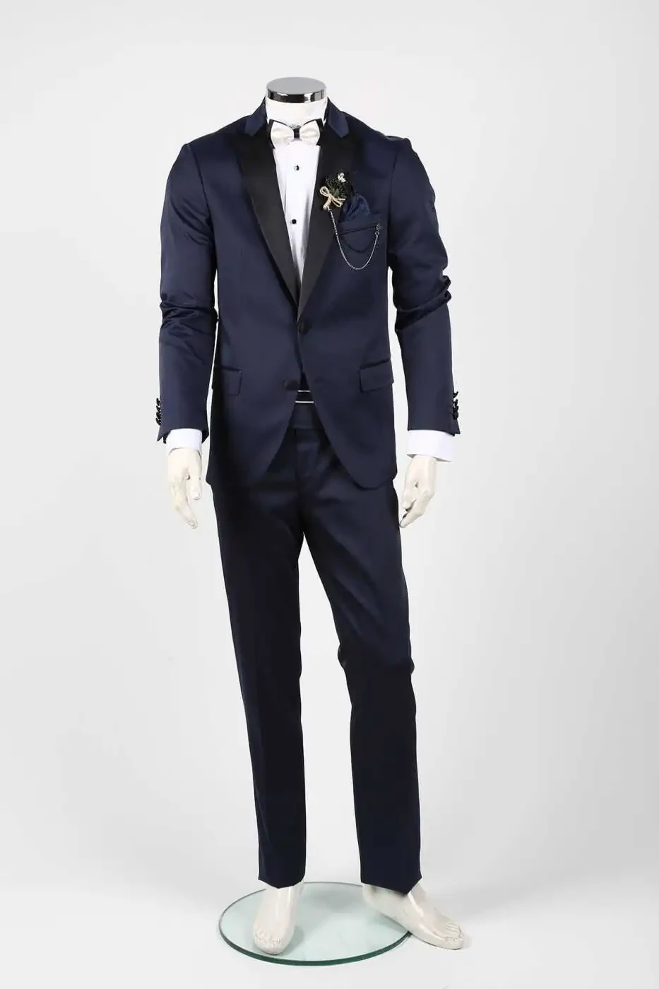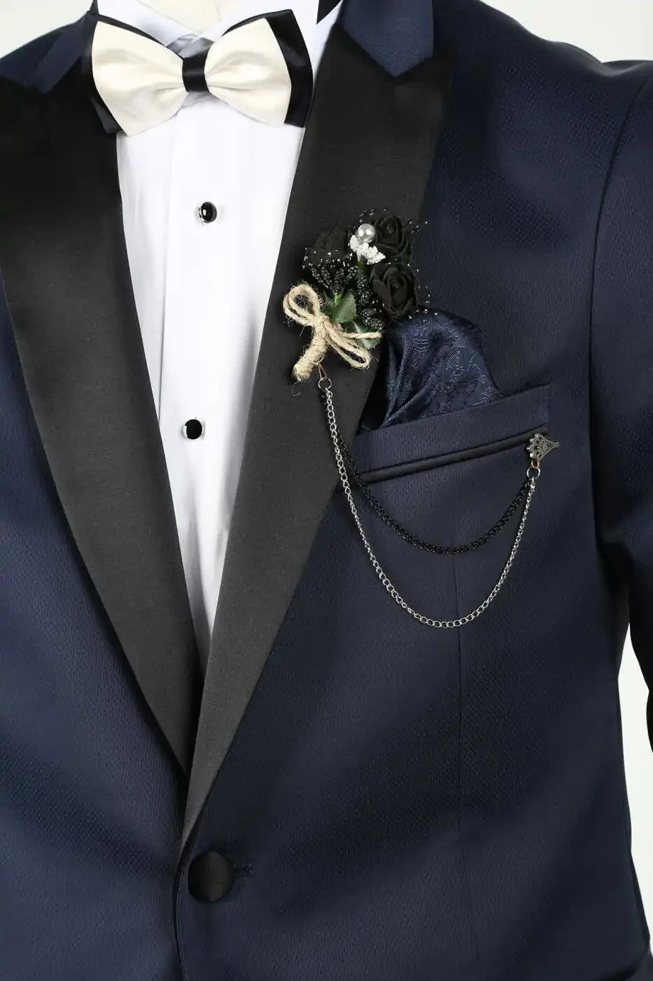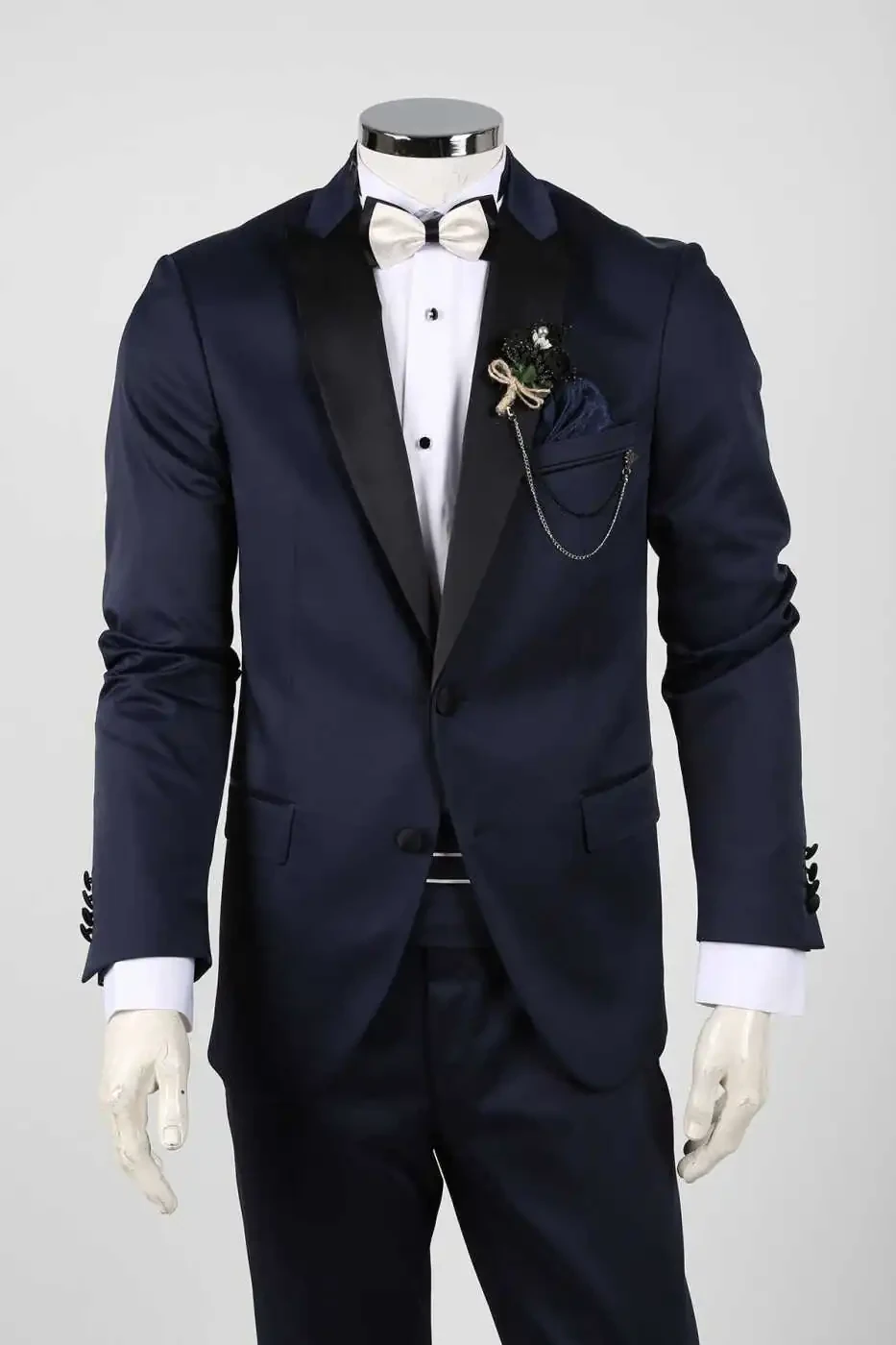 Мужской темно-синий смокинг Terral для жениха - идеальный выбор для стильного и элегантного образа в день свадьбы, изготовлен из высококачественной ткани и тщательно продуман. С его элегантными линиями и безупречной посадкой этот костюм, который заставит вас сиять в ваш особенный день, предлагает незабываемый образ.