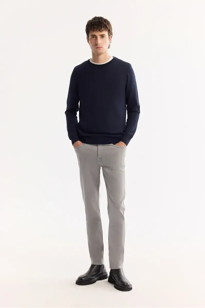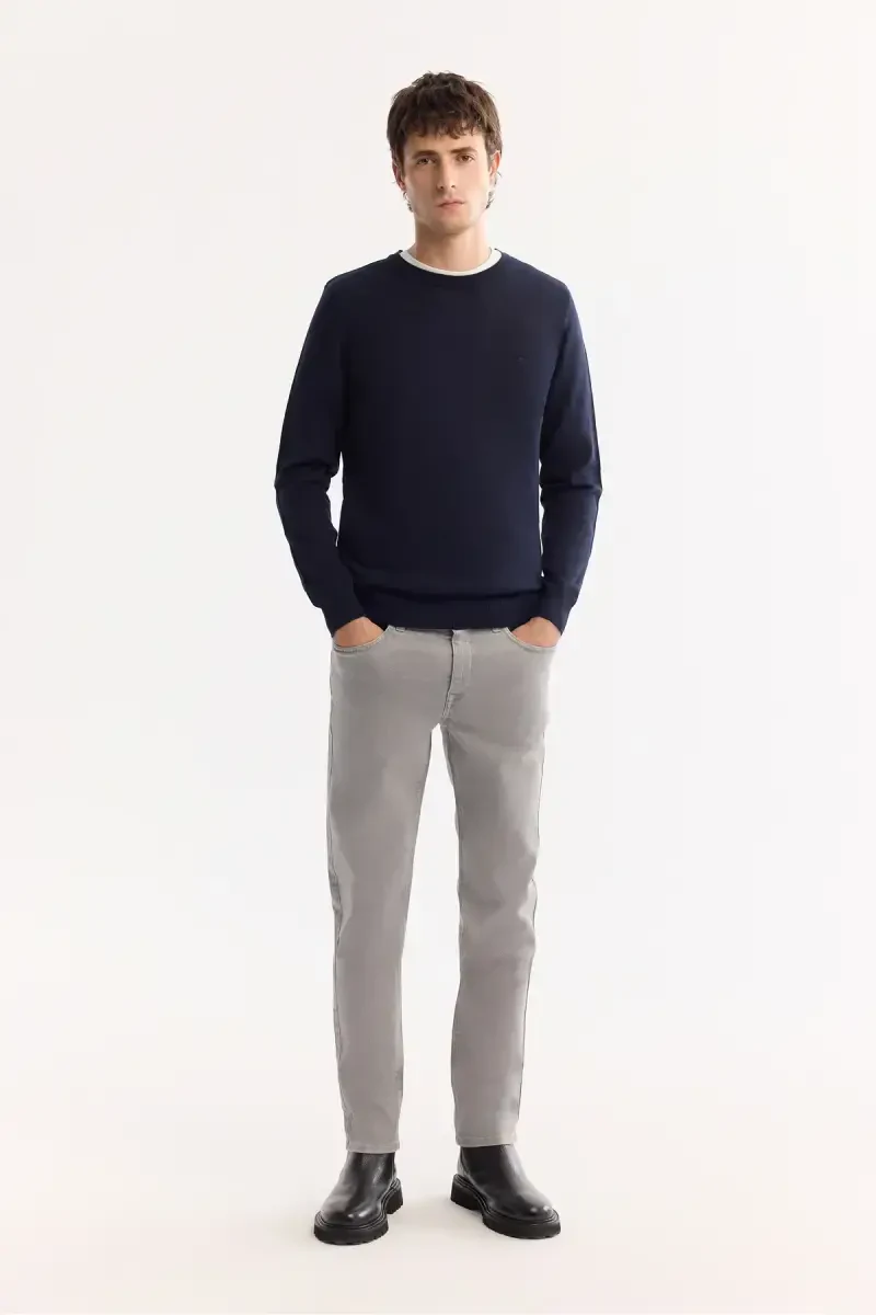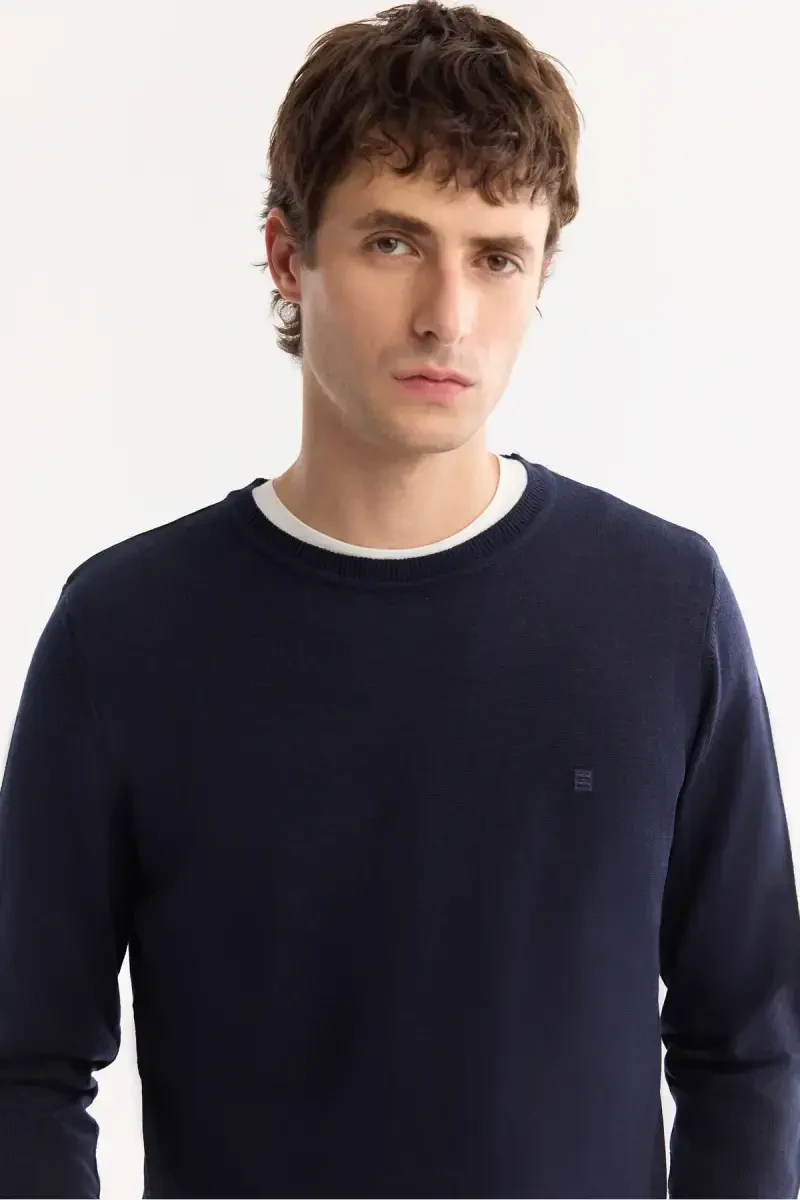 Сочетая в себе стиль и комфорт, мужской темно-синий трикотажный свитер готов стать незаменимой частью вашего гардероба. С круглым вырезом для современного образа, свитер согреет вас в холодные зимние дни благодаря своей мягкой и теплой шерстяной текстуре. Покрой Regular Fit обеспечивает удобство ношения, которое подходит для любого типа фигуры.