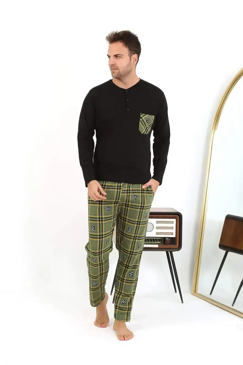 Мужской хлопковый пижамный комплект Angelino с длинными рукавами черного цвета 6861 — идеальный выбор для мужчин, которые ищут сочетание комфорта и элегантности. Благодаря 100% хлопковой ткани этот пижамный комплект обладает мягким прикосновением и обеспечивает комфортный сон ночью. Дышащая структура предотвращает потоотделение и позволяет вашей коже свободно дышать. Этот комплект черного цвета с современным дизайном, также можно носить в качестве домашней одежды. Верх с длинными рукавами и круглым вырезом, низ — с прямыми штанинами и эластичным поясом. Это обеспечивает свободу движений и удобство использования. Прочная ткань и качественные швы обеспечивают длительный срок службы. Мужской хлопковый пижамный комплект Angelino с длинными рукавами черного цвета 6861 — незаменимая вещь в гардеробе современного мужчины, который ценит комфорт и стиль. Этот пижамный комплект, идеально подходящий для повседневного использования, позволит вам оставаться стильным, не жертвуя комфортом, в то время, которое вы проводите дома. Благодаря мягкой текстуре он не раздражает кожу и обеспечивает комфортный сон. Изделие изготовлено из тщательно подобранной 100% хлопковой ткани. Благодаря этому он одновременно прочный и удобный. Легкий уход, можно стирать и гладить при низкой температуре. Этот пижамный комплект, произведенный с качеством Angelino, станет вещью, которую вы будете с удовольствием носить долгие годы. Этот комплект, сочетающий в себе благородство черного цвета и комфорт хлопковой ткани, позволит вам почувствовать себя особенным. Закажите прямо сейчас и наслаждайтесь комфортом! Доставка в течение 24 часов, быстрая и безопасная доставка до вашей двери. При выборе размера вы можете воспользоваться таблицей размеров, которая находится в изображениях товара. Размер изделия на модели: M.