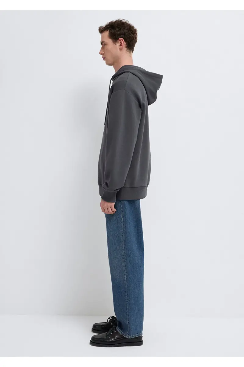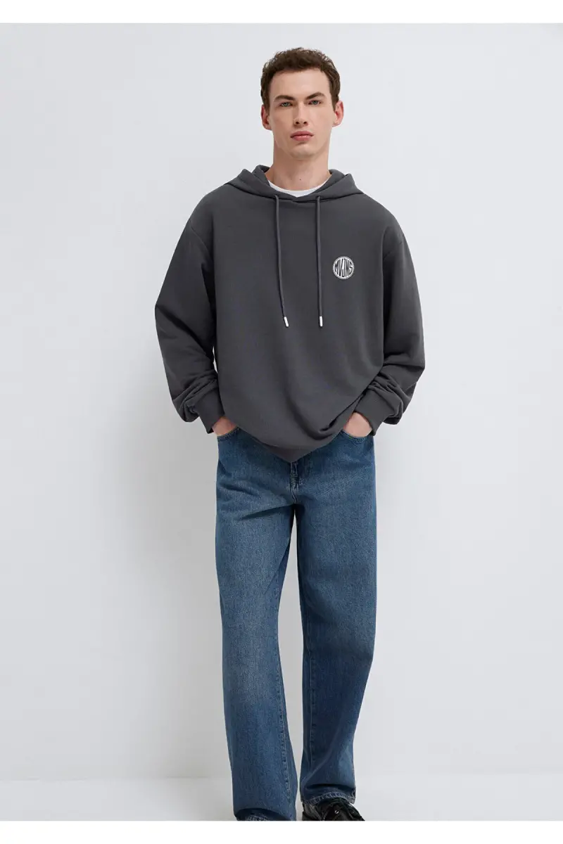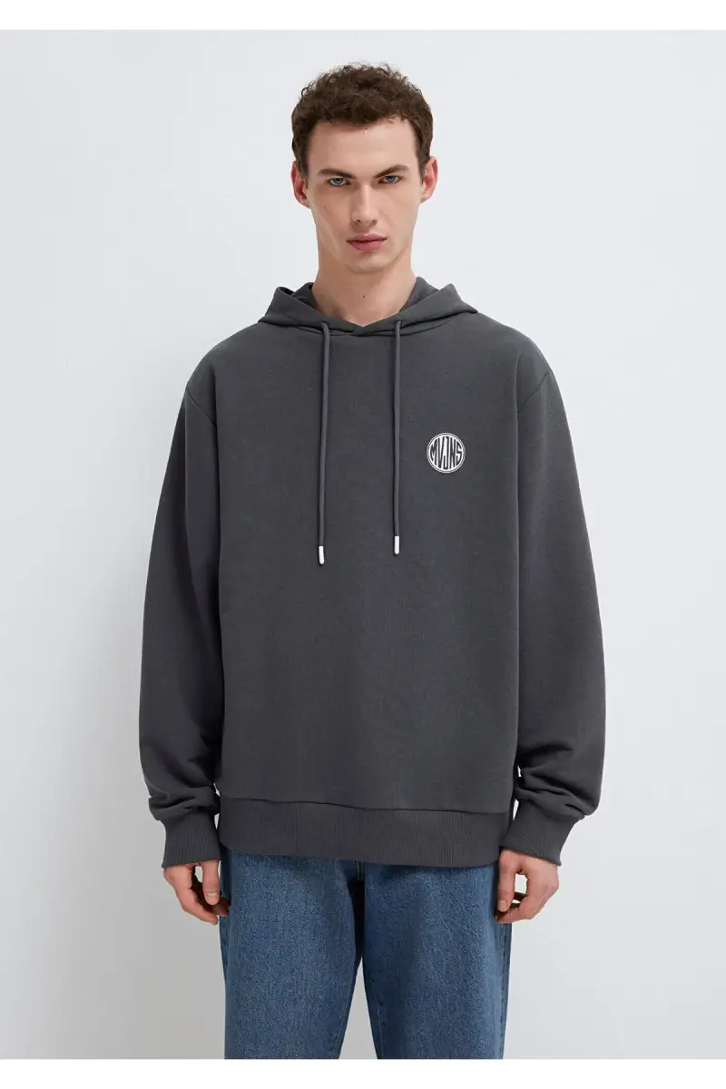 MVJNS Logo Baskılı Kapüşonlu Antrasit Sweatshirt 0611786-80106-Antrasit