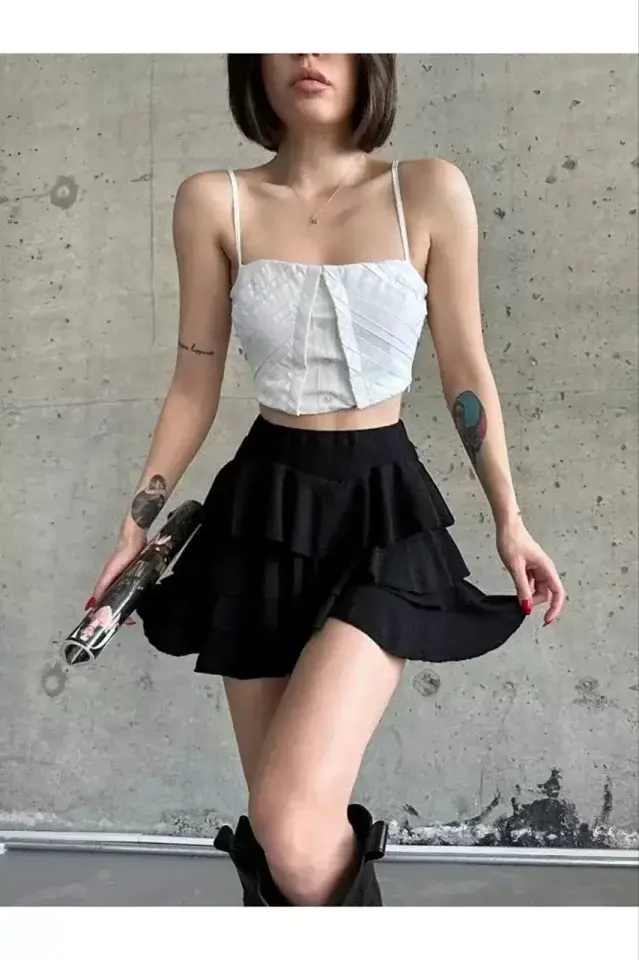 Mykonos Basic Skirt - Black, a candidate to be one of the indispensable pieces of your wardrobe! This skirt, which offers elegance and comfort together, attracts attention with its timeless design that can adapt to any environment. Whether for daily use or a special occasion, it allows you to reflect your style with different combinations. This skirt, which carries the elegance of black, will enrich your combinations by easily matching with any color and style. Thanks to its high-quality fabric, it offers comfortable use all day long, while its stylish cut reveals your body lines perfectly. Mykonos Basic Skirt is a piece that will appeal to every woman with its fashionable design and comfort. It is an ideal choice to reflect your own style and highlight your elegance. The M/38 size on the model will help you better understand how the skirt will look on you. This skirt will not only make you look stylish but also make you feel good. You can easily use this skirt in your business life or daily activities, and it will be one of the most favorite pieces of your wardrobe. You can always look stylish and elegant with the Mykonos Basic Skirt. This skirt is not just a piece of clothing, but also a style statement. Choose Mykonos Basic Skirt to create your own fashion and make a difference. Thanks to its flexible structure, it does not restrict your freedom of movement and allows you to feel comfortable throughout the day. The skirt can be combined in both sporty and classic styles, making it a versatile piece. You can achieve a stylish look with high heels or create a more comfortable style with sneakers. You can also personalize the skirt with your accessories and reflect your own style. Mykonos Basic Skirt is a piece that can be worn in every season. You can always look stylish and trendy by combining it with a light blouse in summer and a thick sweater in winter. The black color of the skirt makes it wearable in all kinds of environments and easily matches other pieces in your wardrobe. This skirt will not only enhance your appearance but also increase your self-confidence. Offering elegance and comfort together, the Mykonos Basic Skirt is a must-have piece in every woman's wardrobe. The model's measurements (Height: 165, Weight: 55, Chest: 90, Waist: 72, Hips: 100) will help you choose the right size.