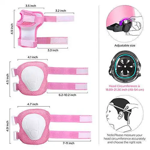 Шлем оснащен высокопрочным корпусом из АБС-пластика и амортизирующей подкладкой из пенополистирола. Регулируемые ремешки обеспечивают идеальную посадку шлема на голову вашего ребенка. Наколенники, налокотники и наручные щитки изготовлены из высококачественной EVA-пены, которая дышит и обеспечивает комфортную посадку. Они также имеют нескользящую поверхность, чтобы ваш ребенок мог безопасно двигаться.
