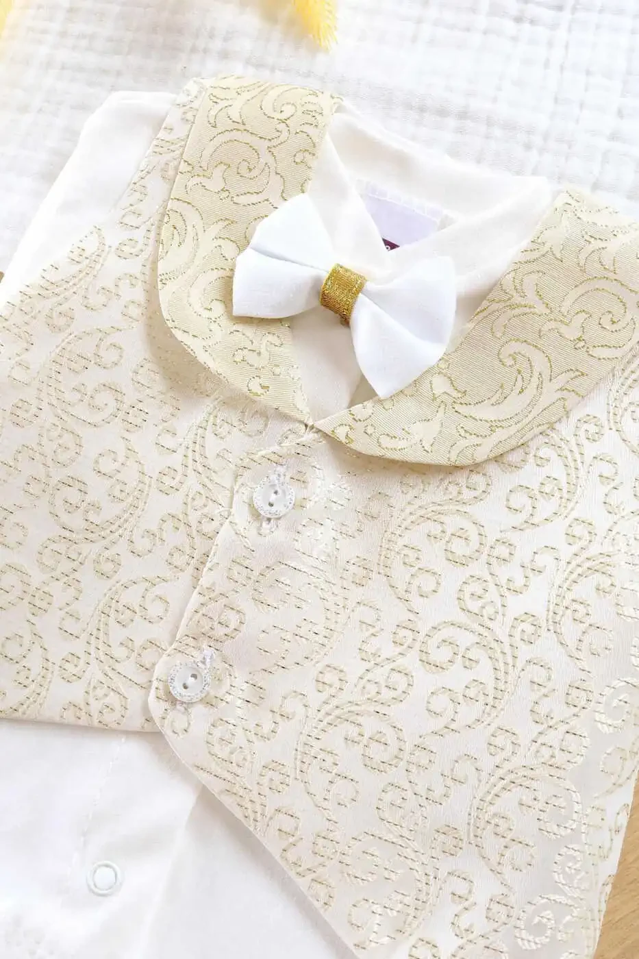 Познакомьтесь с роскошным праздничным комплектом для вашего маленького принца: Жилетный костюм с бабочкой для младенцев на мевлид, особые случаи и крестины 0-3 месяца STL6518, который сочетает в себе элегантность и комфорт! Этот великолепный комплект сделает вашего малыша ослепительным на мевлиде, обряде сунны или другом торжестве, одновременно бережно заботясь о его нежной коже. Изготовленный из мягкой, дышащей и полностью антиаллергенной ткани, этот костюм гарантирует вашему малышу комфорт в течение всего дня. Изысканные детали жилета, бабочки и шапочки дополняют элегантность комплекта, в то время как хлопковая рубашка и брюки обеспечивают комфорт. Дополненный пинетками и варежками, комплект защищает малыша от холода, позволяя ему оставаться одновременно стильным и в тепле. Этот роскошный комплект, произведенный в Турции, на 100% антиаллергенен и подходит даже для самой чувствительной кожи. Благодаря своей не содержащей канцерогенов и не вызывающей потоотделения структуре, ваш малыш будет счастлив и спокоен весь день. Благодаря эластичной структуре этот костюм обеспечивает свободу движений малыша и идеально подходит для длительного использования. Благодаря качественной ткани он не провисает и после каждой стирки выглядит как новый. Он изготовлен с заботой, с использованием самых качественных и безопасных материалов, учитывая нежную кожу вашего малыша. Этот особенный комплект подарит спокойствие вам и вашему малышу. Запечатлейте самые важные моменты жизни вашего маленького чада с помощью этого великолепного комплекта!