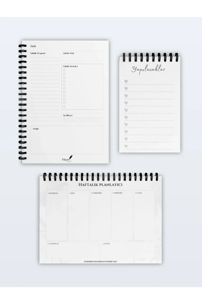 Planlama Seti 3'lü, Günlük Planlayıcı, Haftalık Planlayıcı ve Yapılacaklar Ajandası ile hayatınızı düzene sokmak artık çok daha kolay ve keyifli! Bu özel set, Fobinote kalitesiyle evinize kadar geliyor. Yoğun günlerinizde size rehberlik edecek, hedeflerinize ulaşmanızı sağlayacak ve zamanınızı en verimli şekilde kullanmanıza yardımcı olacak. İster öğrenci olun, ister çalışan, ister ev hanımı; bu set sayesinde günlük ve haftalık planlarınızı kolayca yapabilir, önemli notlarınızı alabilir ve yapılacaklar listenizi her zaman gözünüzün önünde bulundurabilirsiniz. Setin şık ve modern yeşil rengi, motivasyonunuzu artıracak ve çalışma ortamınıza enerji katacaktır. Üstelik, kampanya fiyatıyla sunulan bu özel sete sahip olmak için acele edin, çünkü stoklarla sınırlı! Bu set, birden fazla satıcı tarafından sunulabilir, ancak Fobinote kalitesi her zaman en iyi seçenektir. Trendyol'un güvencesiyle, 15 gün içinde ücretsiz iade imkanıyla bu sete sahip olabilirsiniz. Unutmayın, bu üründen en fazla 10 adet sipariş verebilirsiniz. Kurumsal siparişler için farklı limitler belirlenmiştir. Planlama Seti 3'lü ile daha organize, daha verimli ve daha başarılı bir hayata adım atın!
