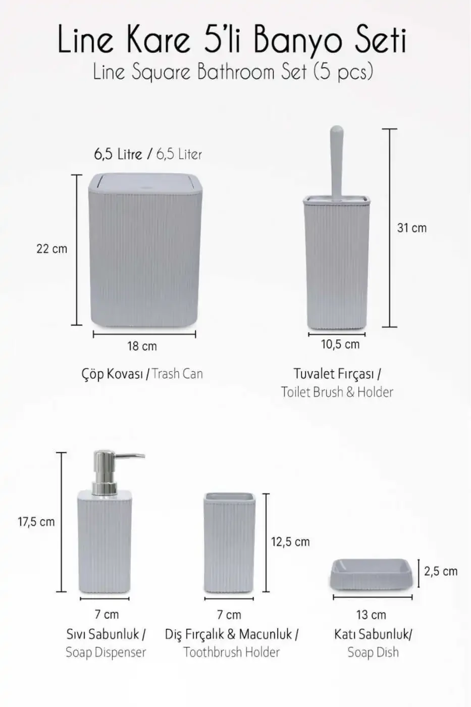 Разработанный, чтобы придать вашей ванной комнате современный и стильный вид, набор для ванной комнаты Line 5 из 5 предметов квадратной формы предлагает все необходимые аксессуары в одном комплекте. Этот элегантный набор состоит из пяти предметов: мусорного ведра, туалетного ершика, дозатора для жидкого мыла, мыльницы для твердого мыла и стакана для зубных щеток. Благодаря своему квадратному дизайну и стильным цветам, он идеально впишется в любой декор ванной комнаты. Изготовленный из прочных и качественных материалов, набор для ванной комнаты Line 5 из 5 предметов идеально подходит для длительного использования. Все части набора легко моются, обеспечивая гигиеническую среду в ванной комнате. Это идеальный выбор для тех, кто ищет порядок и элегантность в своей ванной комнате. Этот продукт будет доставлен вам безопасно и быстро компанией Homie. Закажите прямо сейчас, чтобы воспользоваться акционной ценой и украсить свою ванную комнату! Наш продукт, благодаря своему стильному дизайну и практичности, преобразит вашу ванную комнату. Благодаря тому, что он изготовлен из качественных материалов, вы можете безопасно использовать его долгие годы. В наличии более 100 товаров, поэтому вы можете заказать столько, сколько захотите, но помните, что за один раз вы можете заказать не более 10 штук. Trendyol оставляет за собой право отменить заказы на сумму более 10 штук. Это ограничение не распространяется на корпоративные заказы.