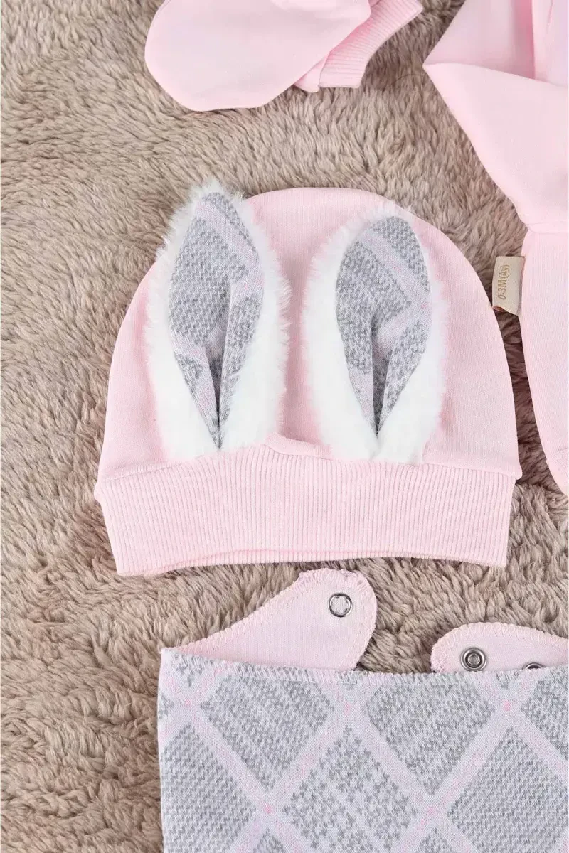 Набор для выписки из роддома для девочки с ушками кролика из органического хлопка, 5 предметов