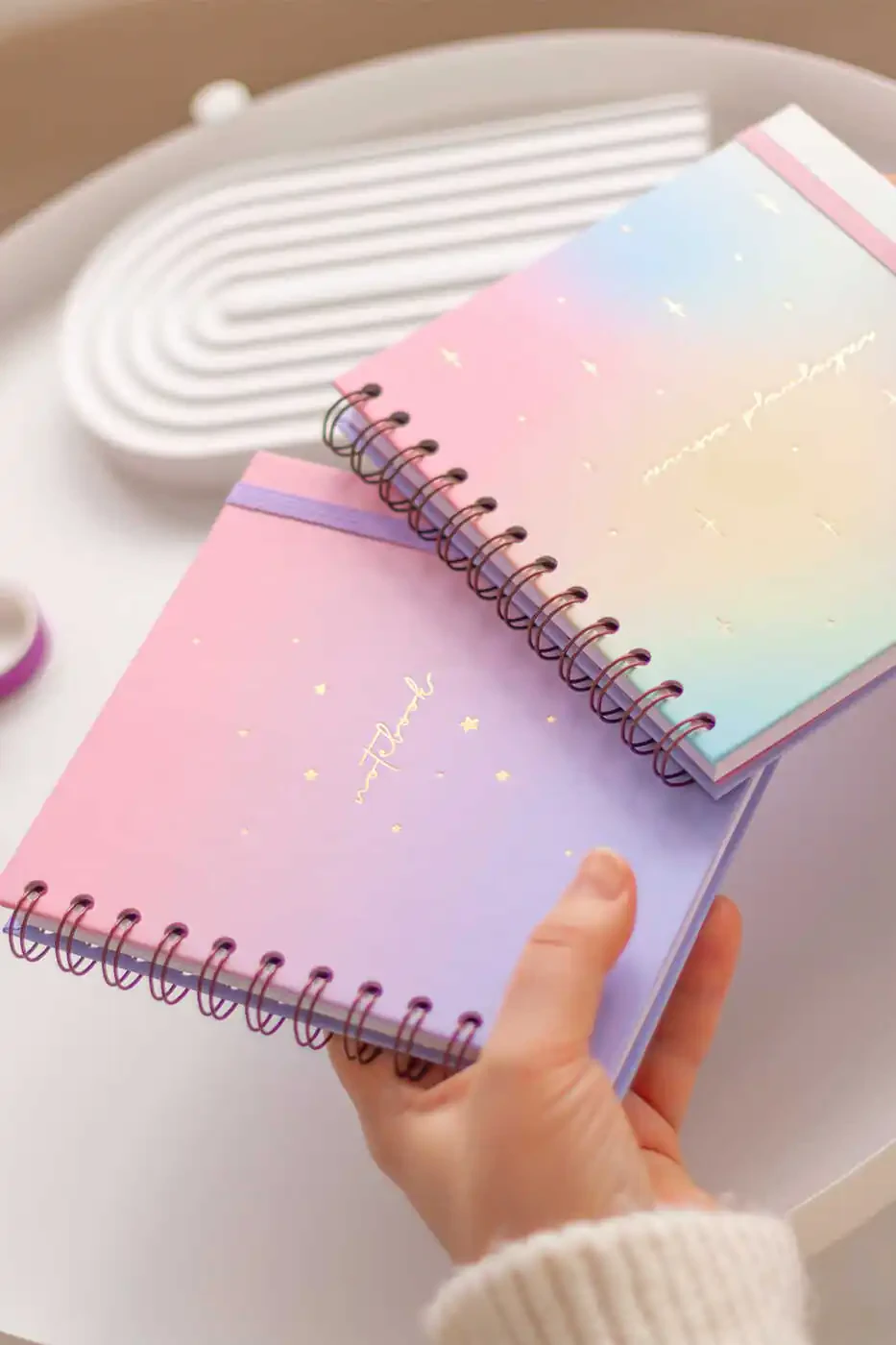планировщик, ежедневник, блокнот, пружинный переплет, вечный, радужный, 15x15 см, квадратный, набор, организация, творчество, дневник, запись заметок, журнал идей, альбом для рисования