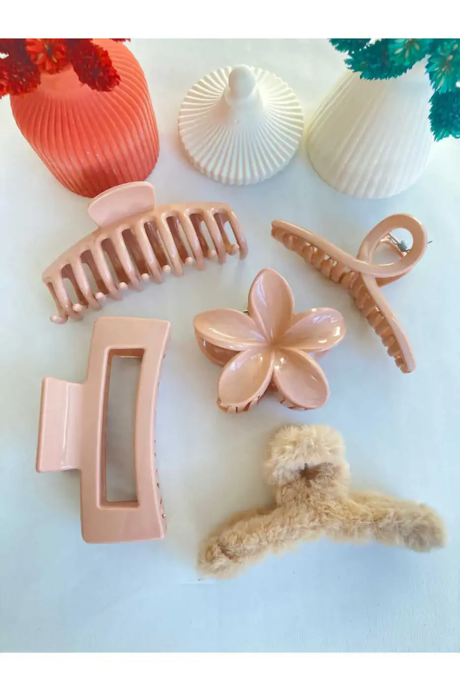 5 заколок для волос с лотосом, бантиком, прямоугольником, плюшем и когтем