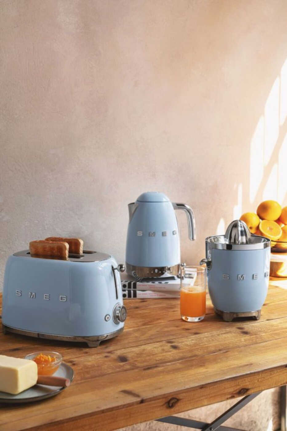 Набор из чайника, тостера и соковыжималки для цитрусовых пастельно-голубого цвета