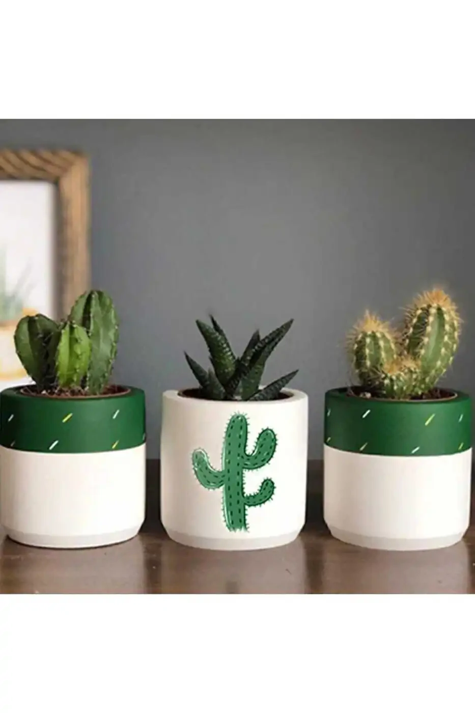 Эти три маленьких горшка разработаны с милым белым фоном, каждый украшен уникальными рисунками кактусов, создавая потрясающий контраст. Горшки изготовлены из высококачественной керамики, придавая стильный вид, который дополняет любую обстановку.