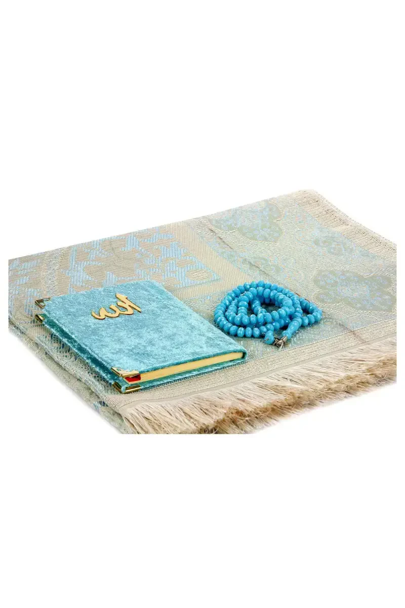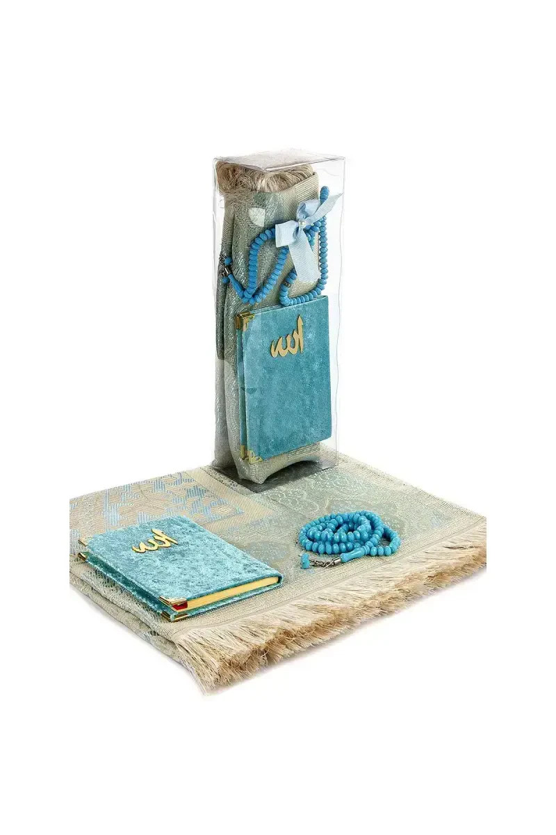 набор для намаза, бархатный ясин, четки, синий коврик для намаза, набор для поклонения