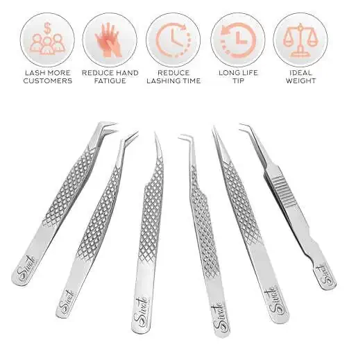 Набор профессиональных пинцетов для наращивания ресниц SIVOTE, 6 шт., является отличным выбором для профессионалов наращивания ресниц и для домашнего использования. Этот набор поможет вам добиться успешных и профессиональных результатов.