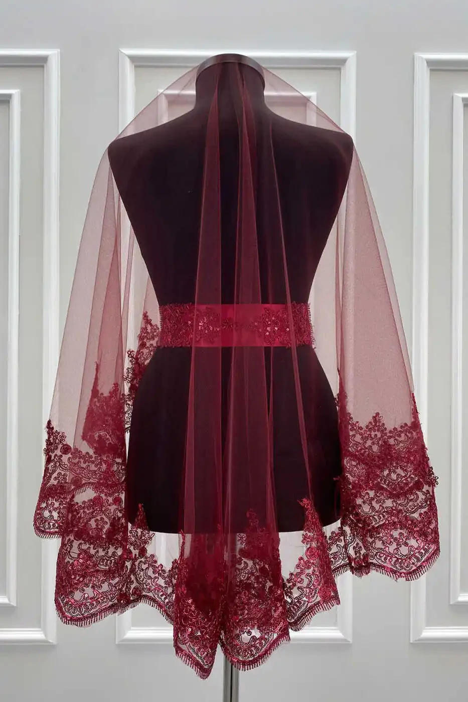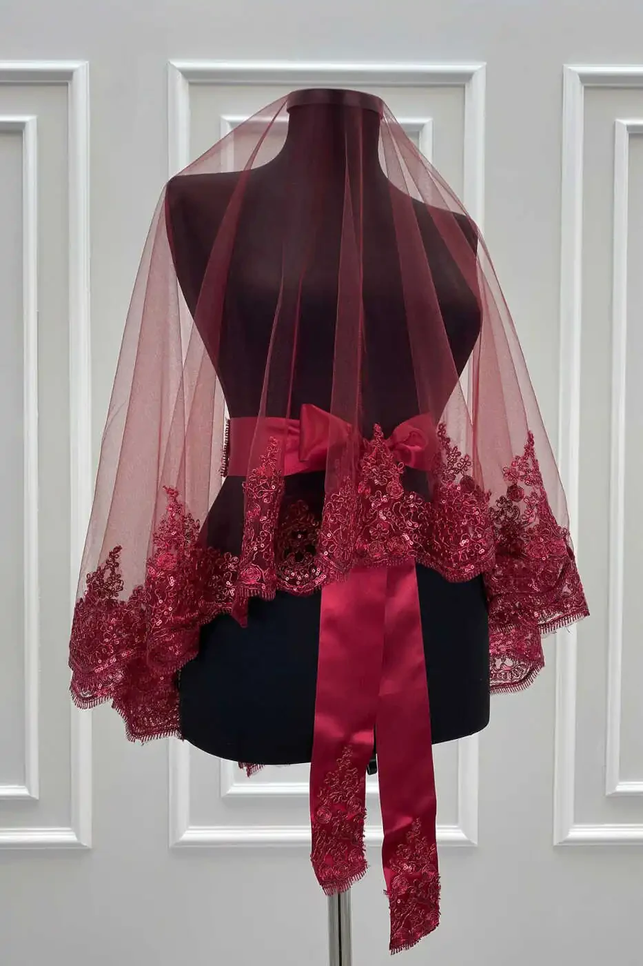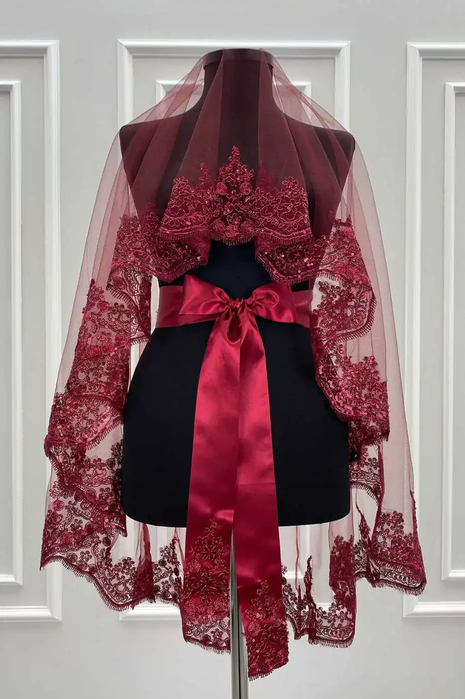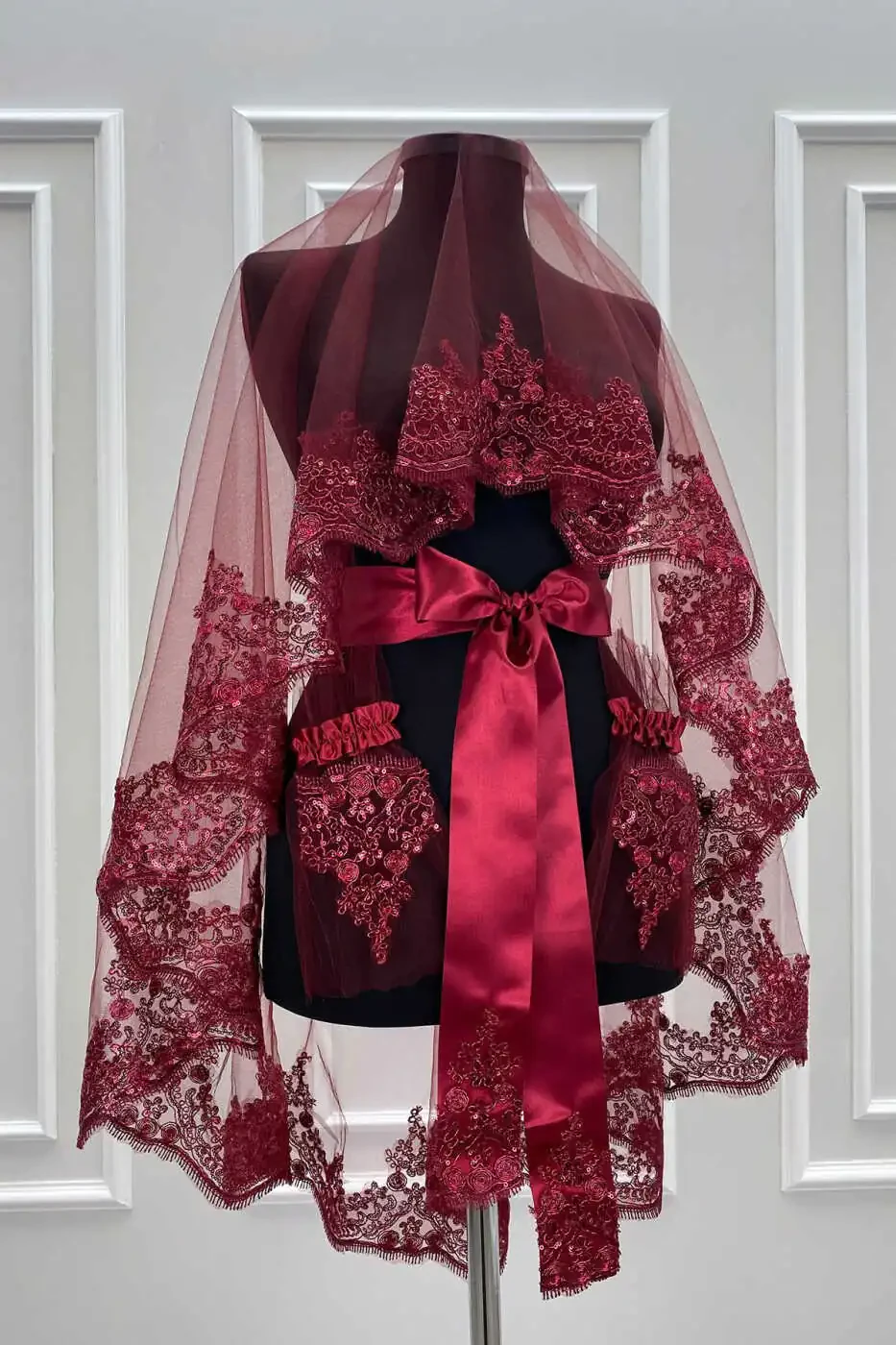- Кружевная фата: Длинная и струящаяся фата, украшенная мягкой и элегантной кружевной вышивкой. Идеально подходит для создания романтической атмосферы, украшающей мечты каждой невесты.